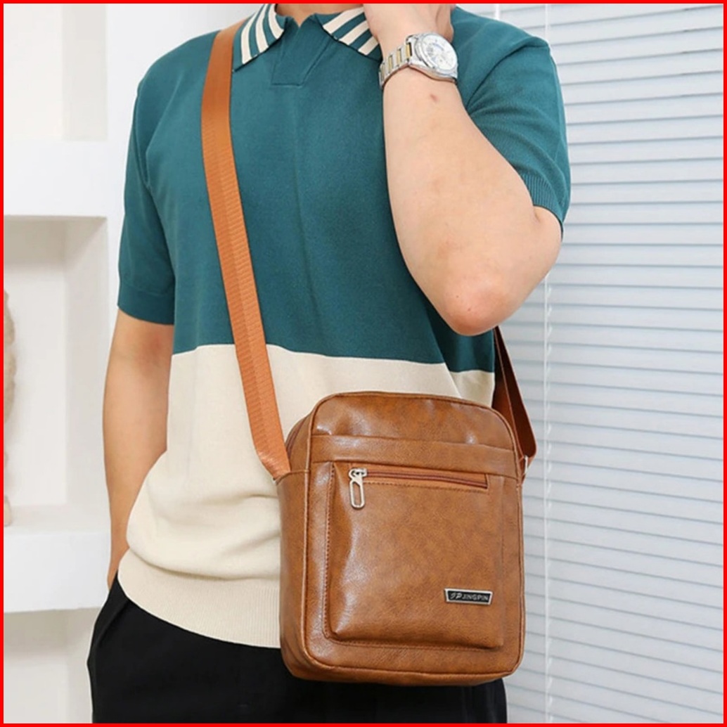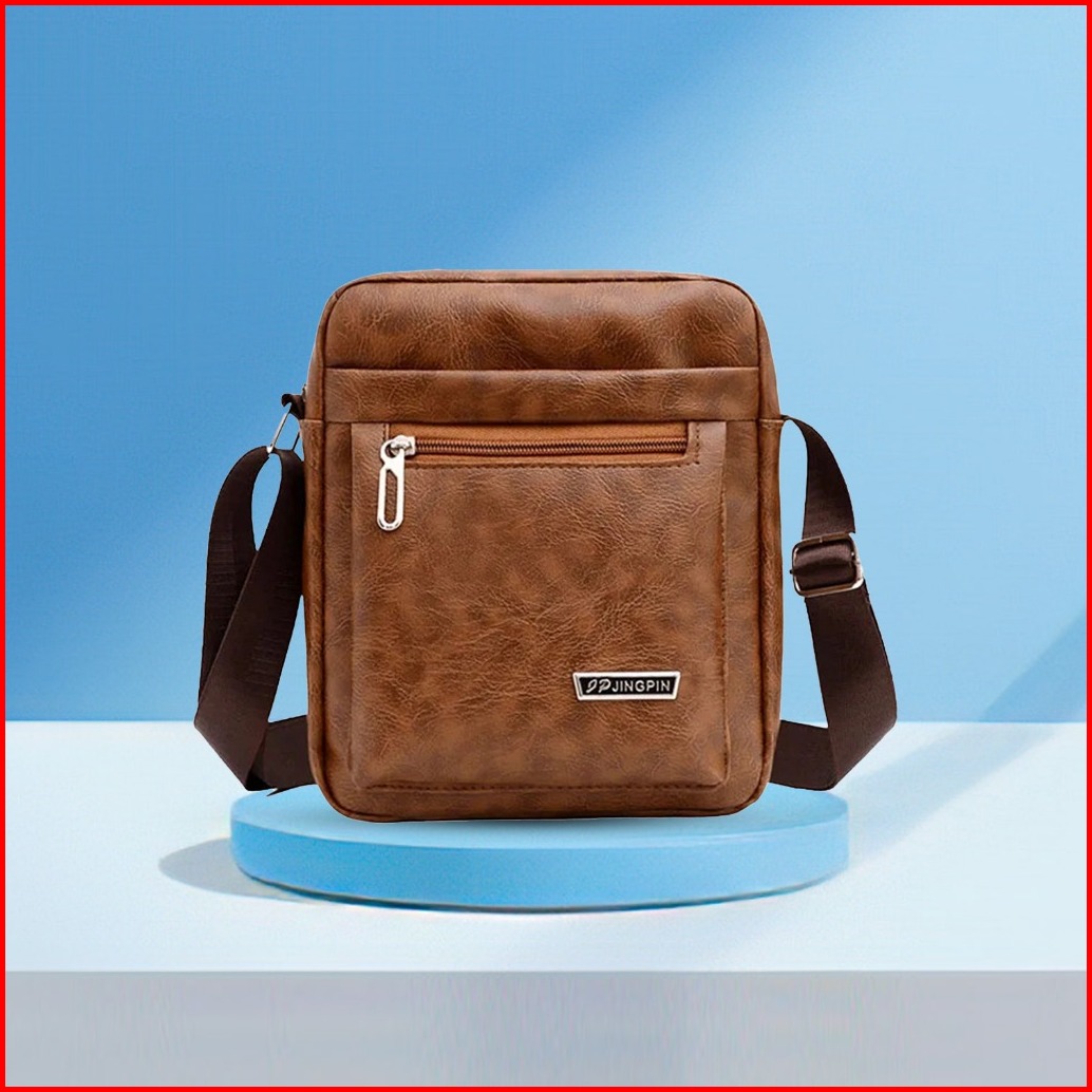 Tas Selempang Pria Motif Polos Tas Slingbag Bahu Bahan Kulit New Collection - Wy 3046