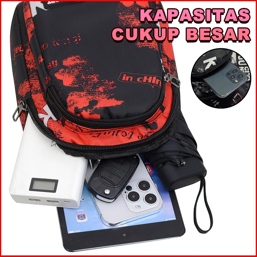 Tas Selempang Abstrak Pria Waterproof Slingbag Fashion Trendy Lubang Earphone Terbaru Zl 009