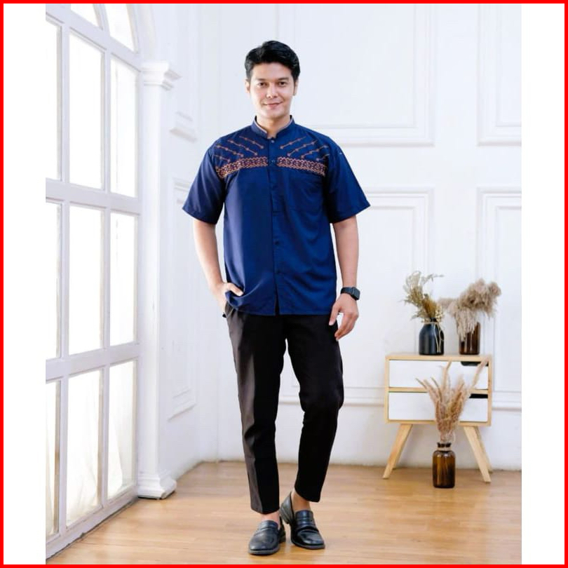 Baju Koko Bordir Lengan Pendek Katun Polos