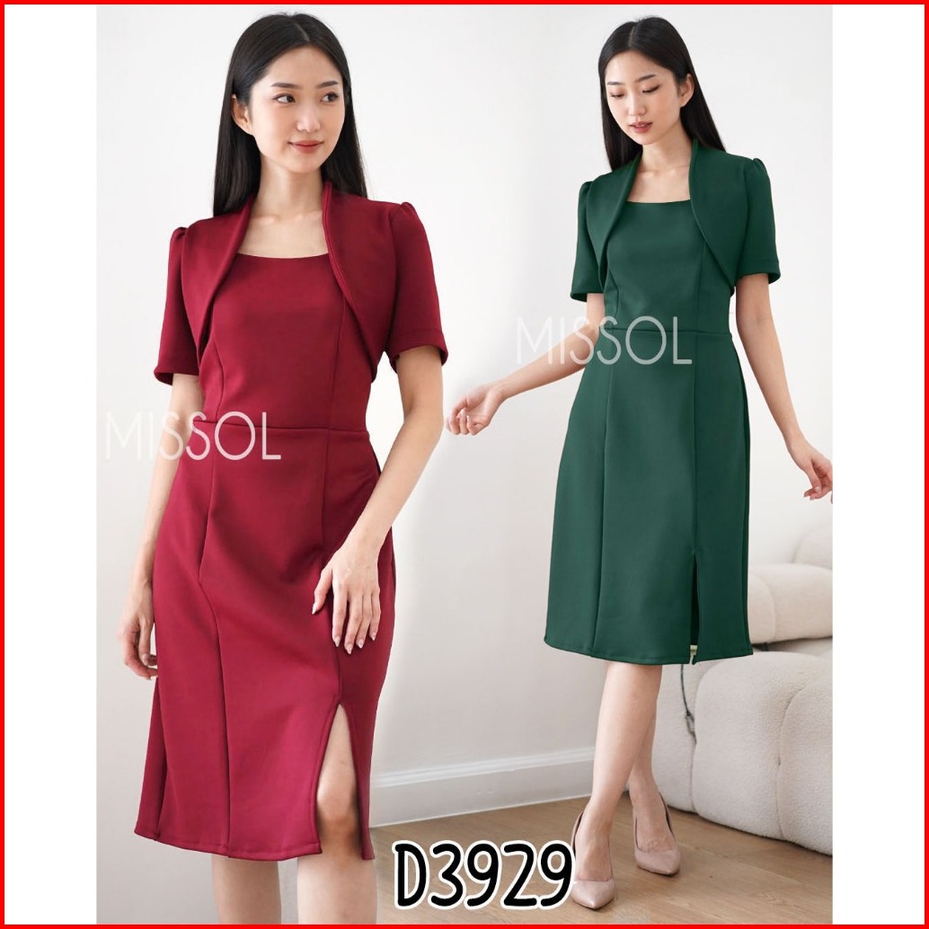 Missol Dress Scuba Kekinian Polos Lengan Pendek Casual Party Christmas Imlek D3929