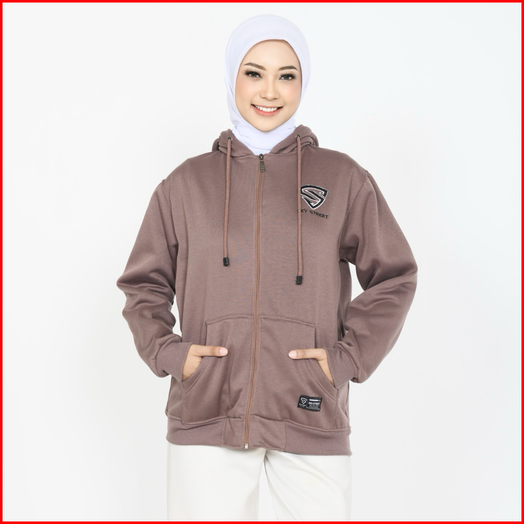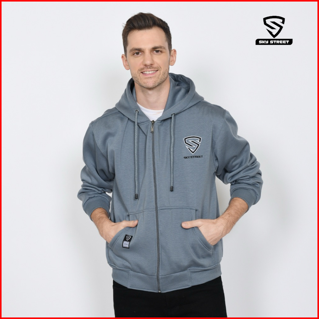 Sky Street Hoodie Sweater Jacket Zipper Resleting Logo Bordir 280 Gms Tebal Lembut Pria Wanita Bahan Fleece Distro Premi