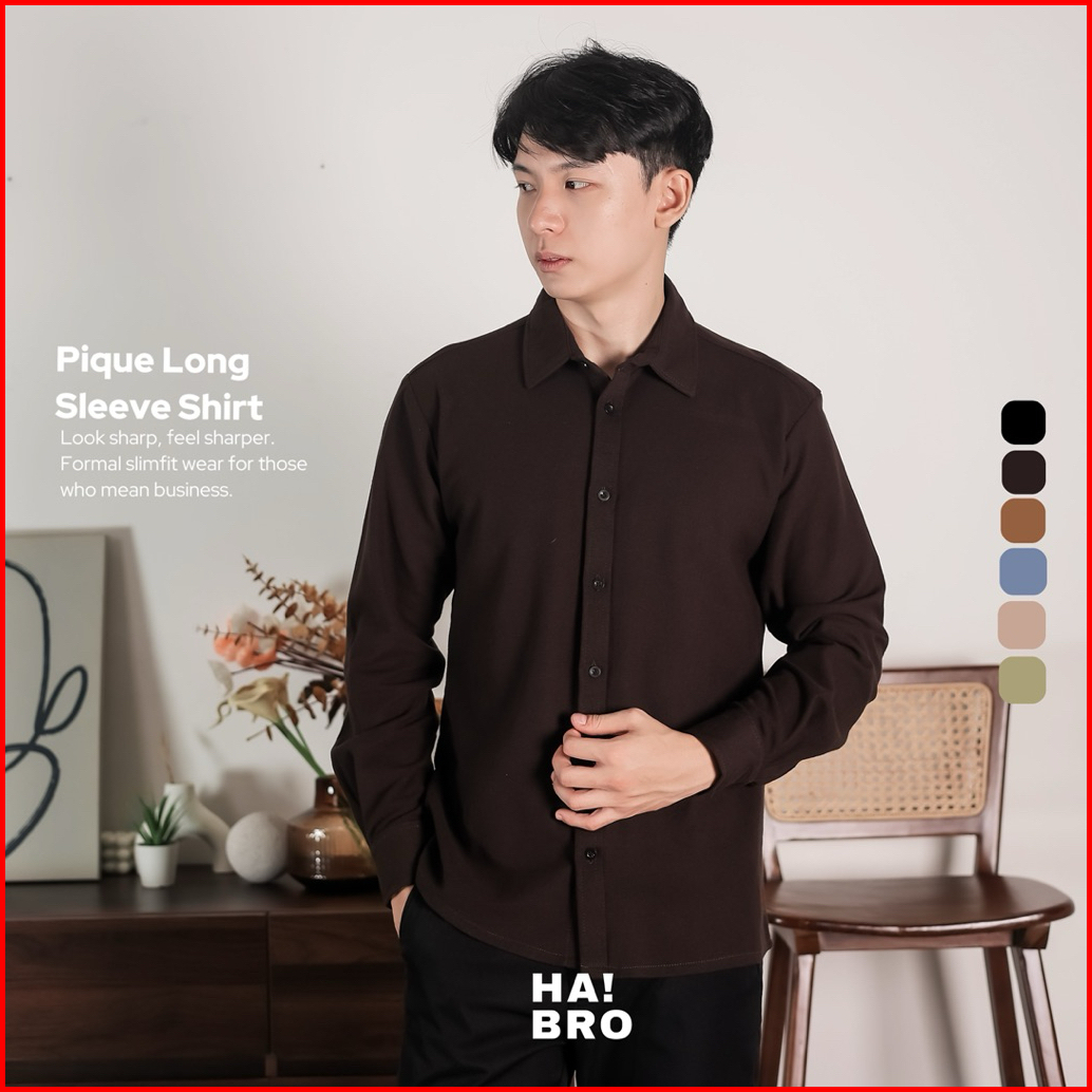 Haibro - Kemeja Long Sleeve Pique Pria Coffe