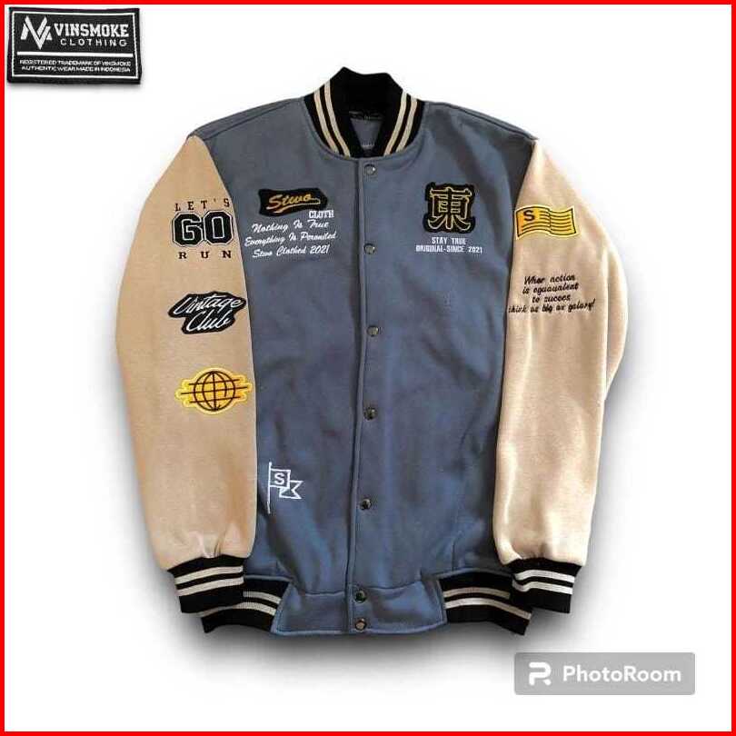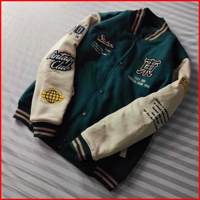 Jaket Varsity Vintage Full Bordir Hitam Jaket Baseball Varsity Pria Wanita New Arrival Anjay