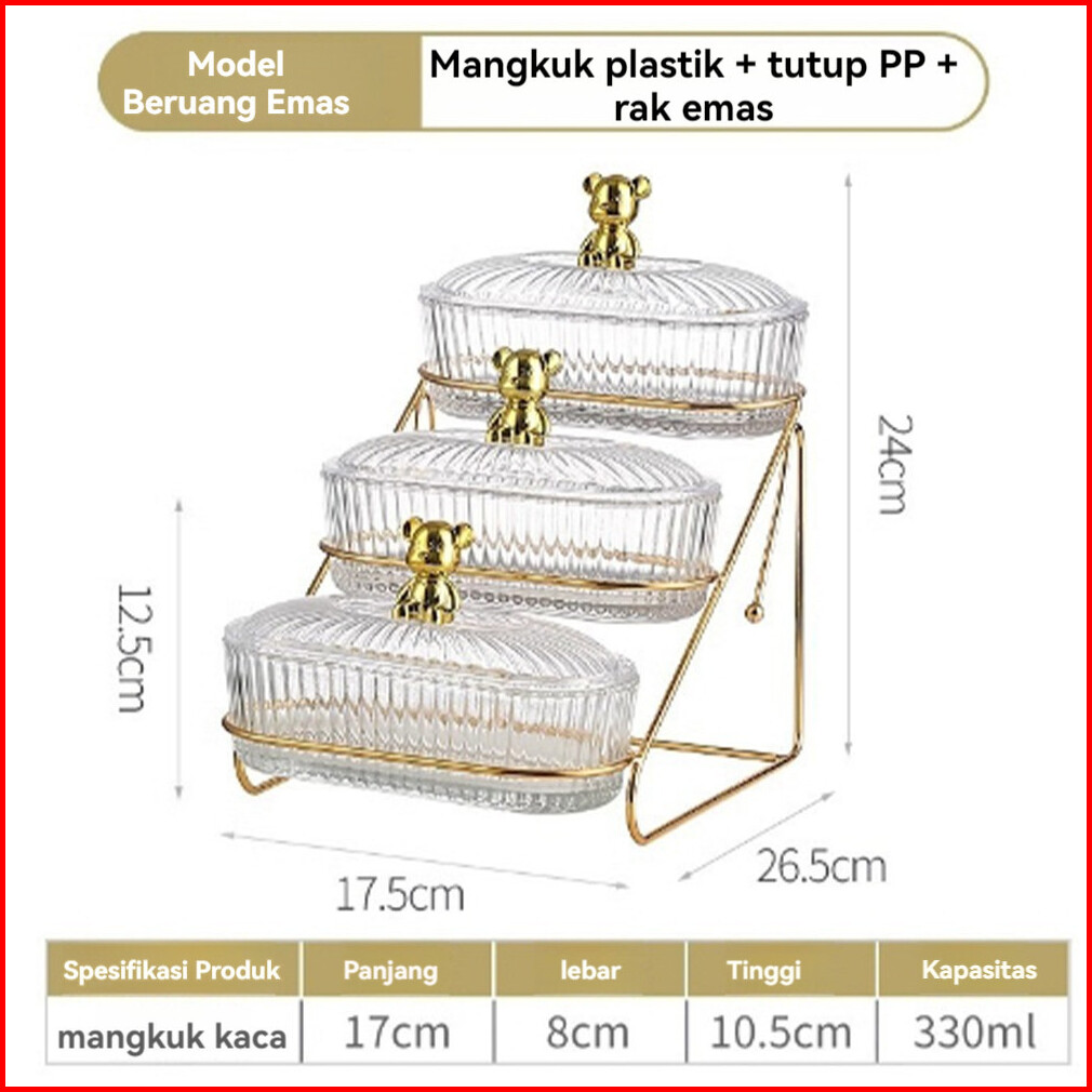 Tatakan Makanan 3 Buah Wadah Tingkat Kotak Snack Ringan Kopi Wadah Buah