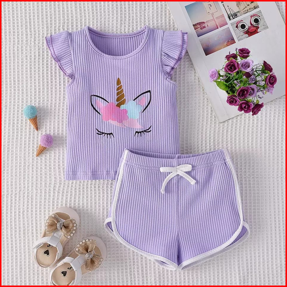 Abeekids Baju Setelan Kaos Anak Perempuan Huma Motif Unicorn