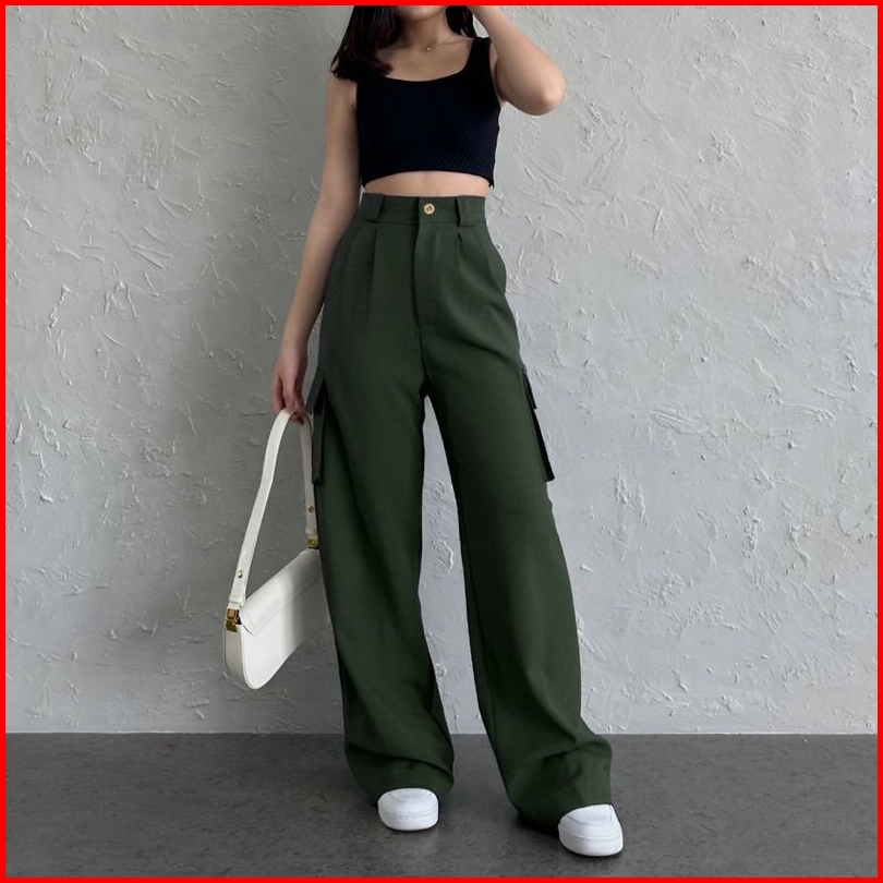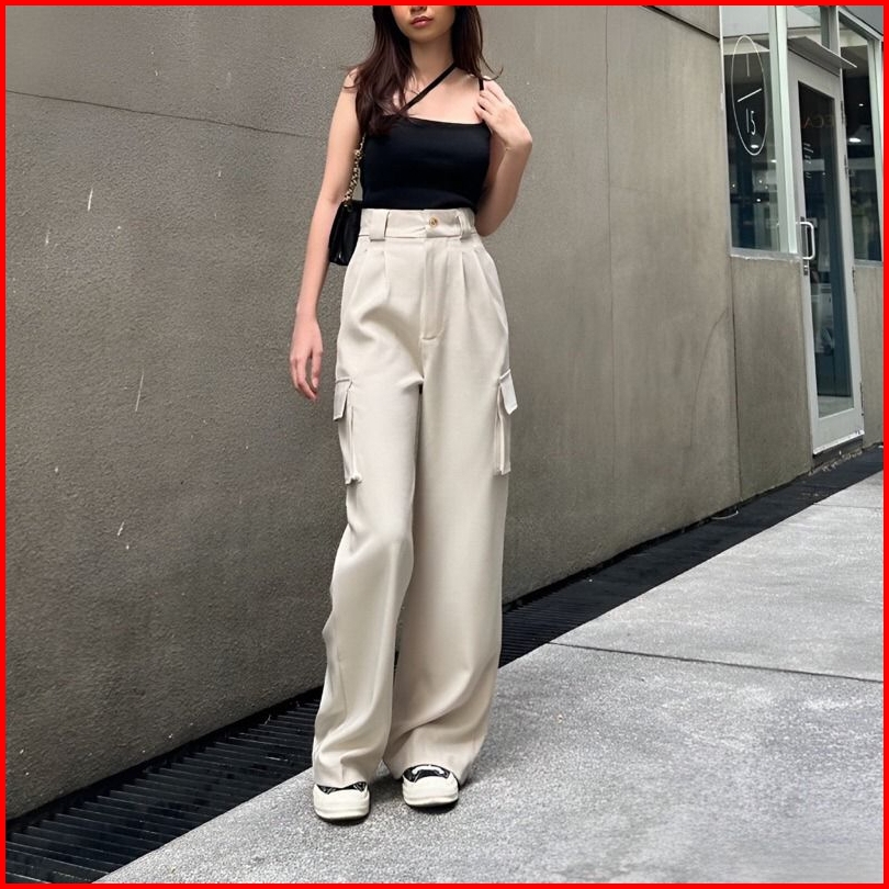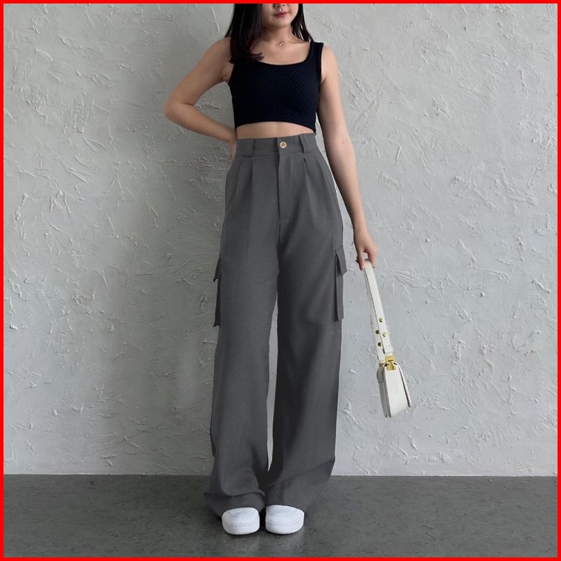 Celana Cargo Wanita Highwaist Loose Korean Style - Cargo Pants