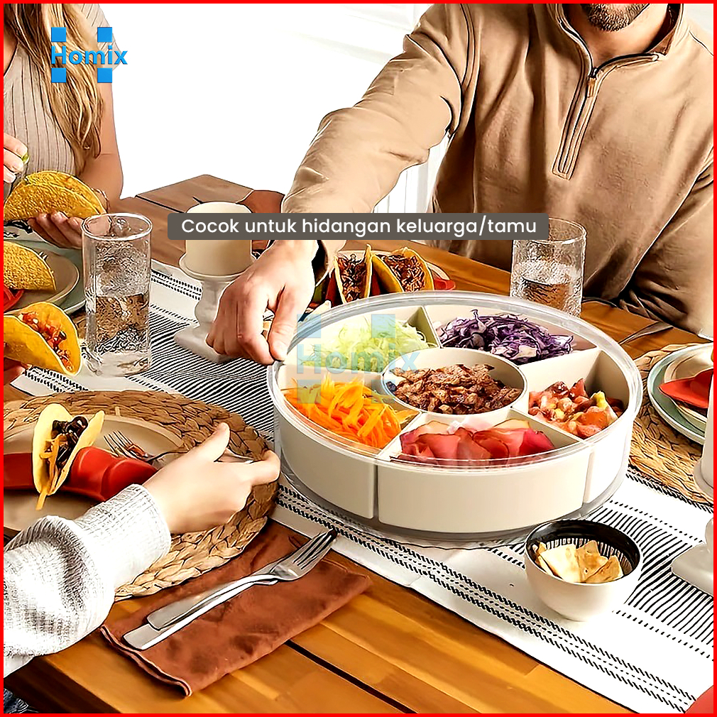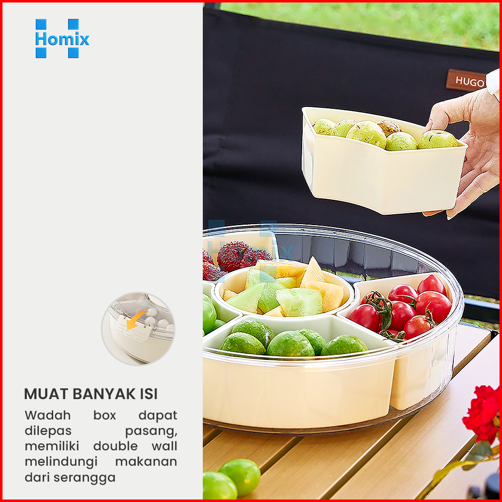 Homix - Wadah Makanan 6 Sekat Putar 360 Food Grade Serbaguna Snack Container