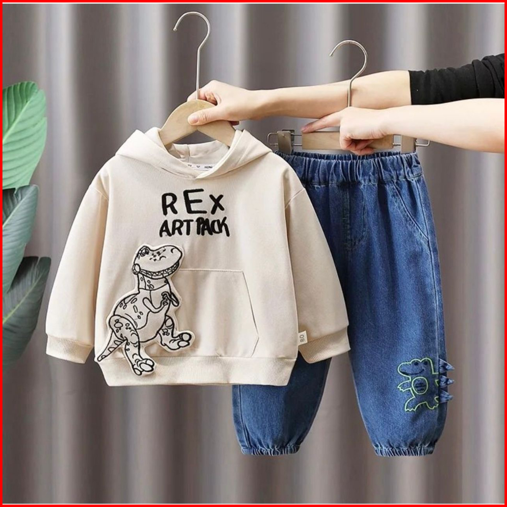 Setelan Jeans Anak Rex Art Space Motif Hewan 1-5 Tahun