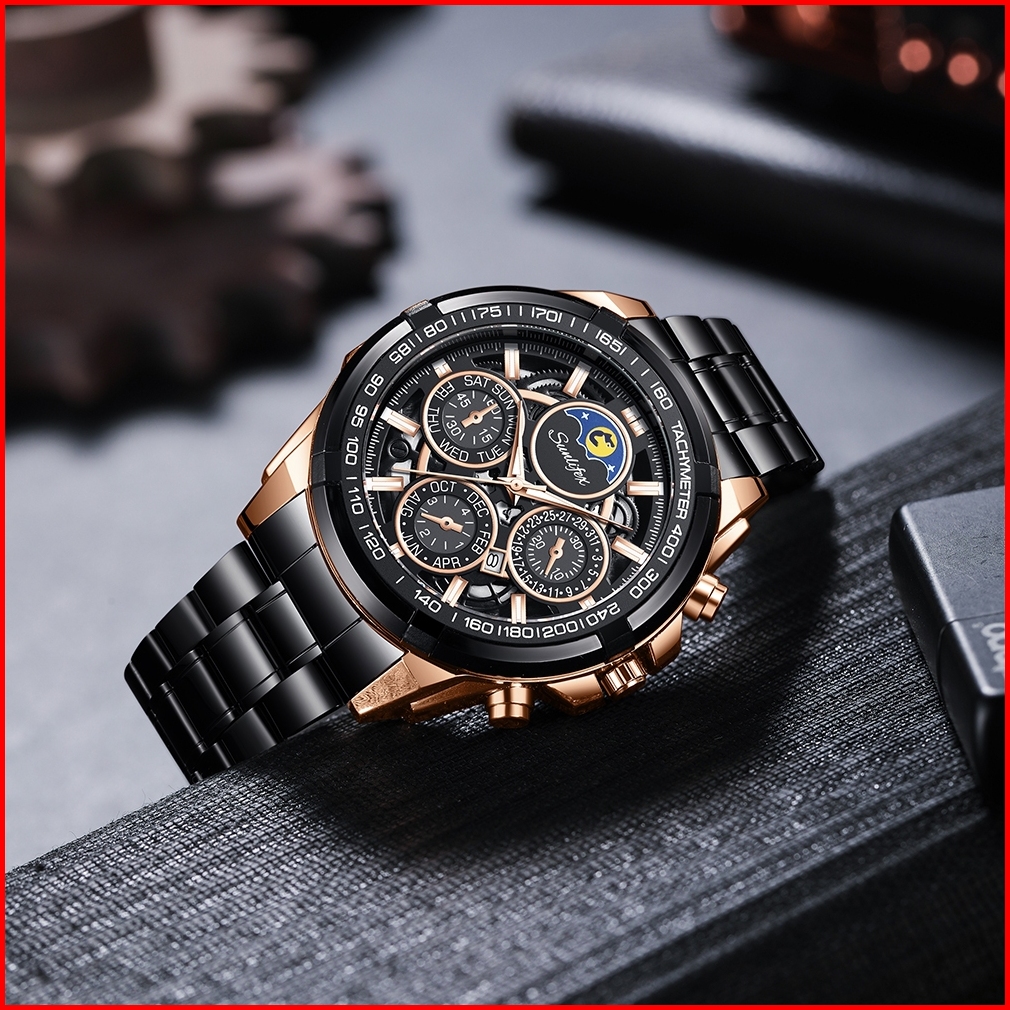 Sunlifex 9192 Jam Tangan Pria Date Anti Air Tali Stainless Steel Fashion Business Cowok Men Watch