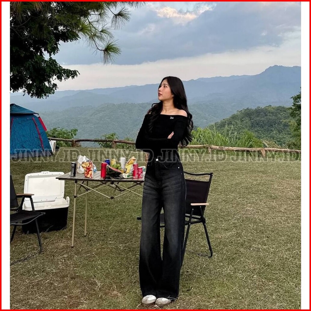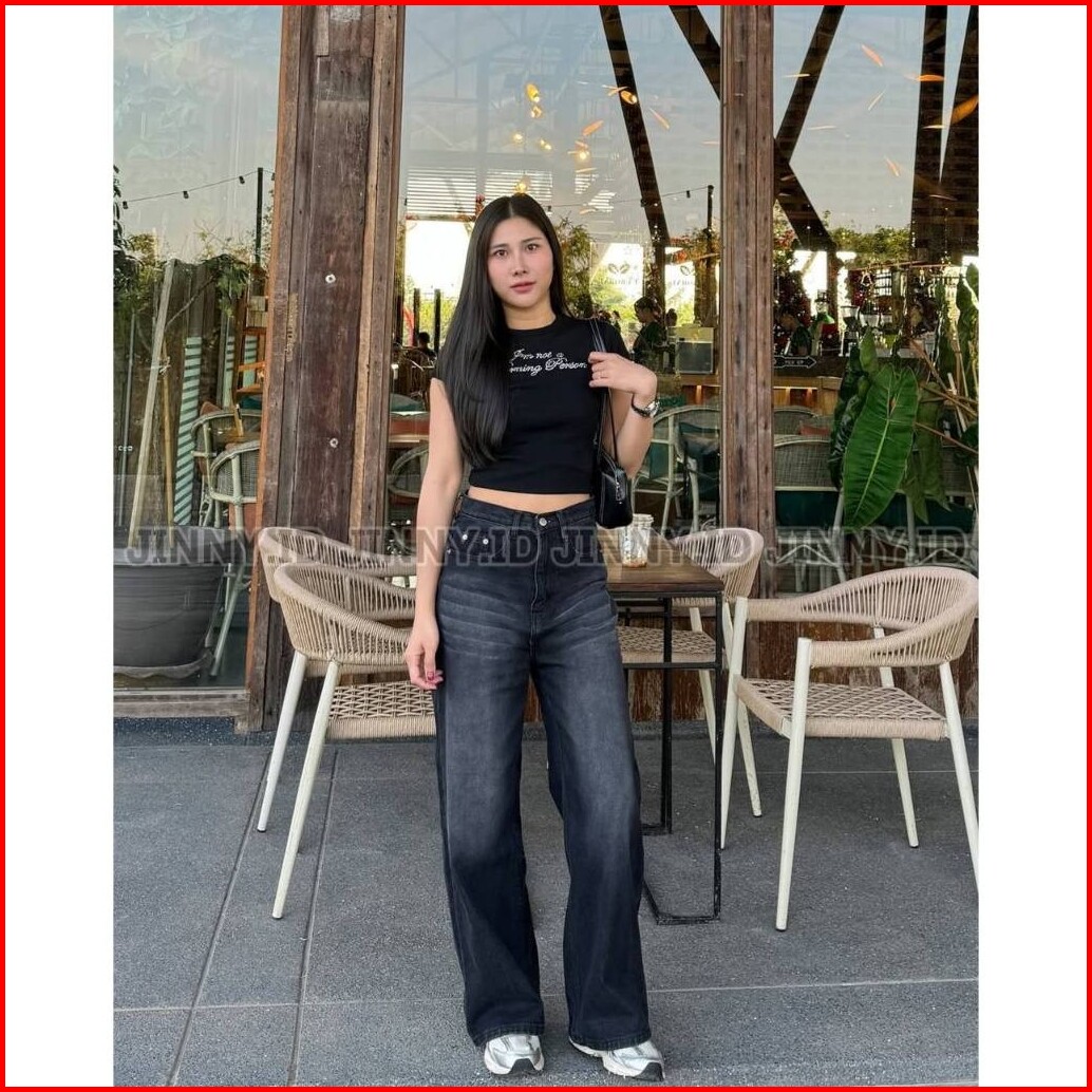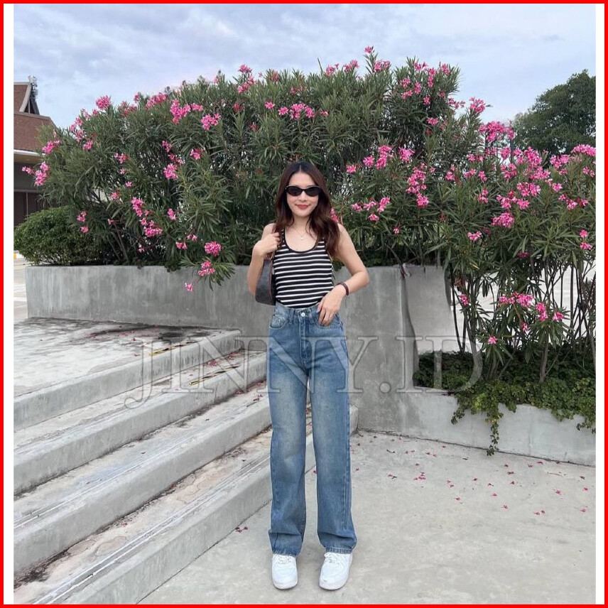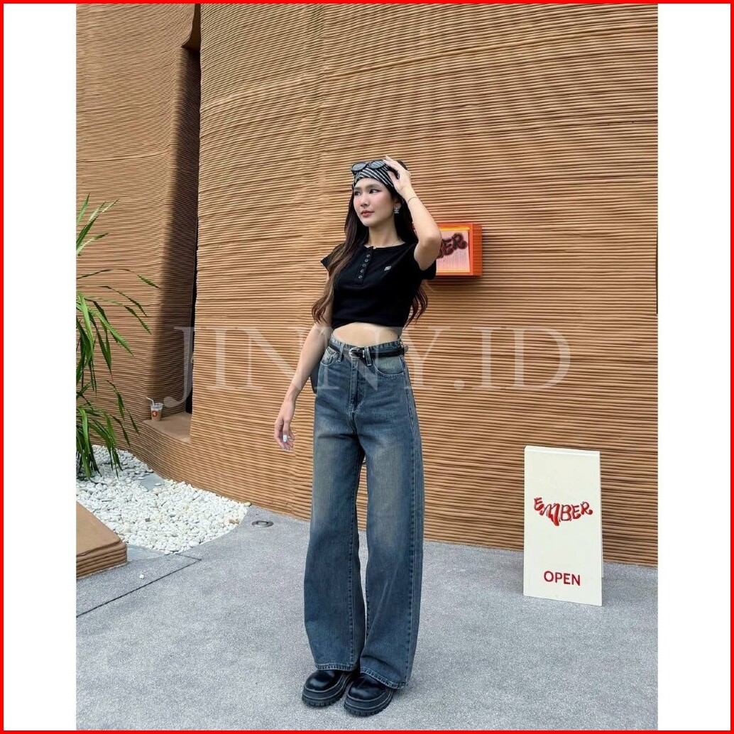 Highwaist Loose Adjustable Baggy Under Age Voll 2 Celana Jeans Wanita Kekinian