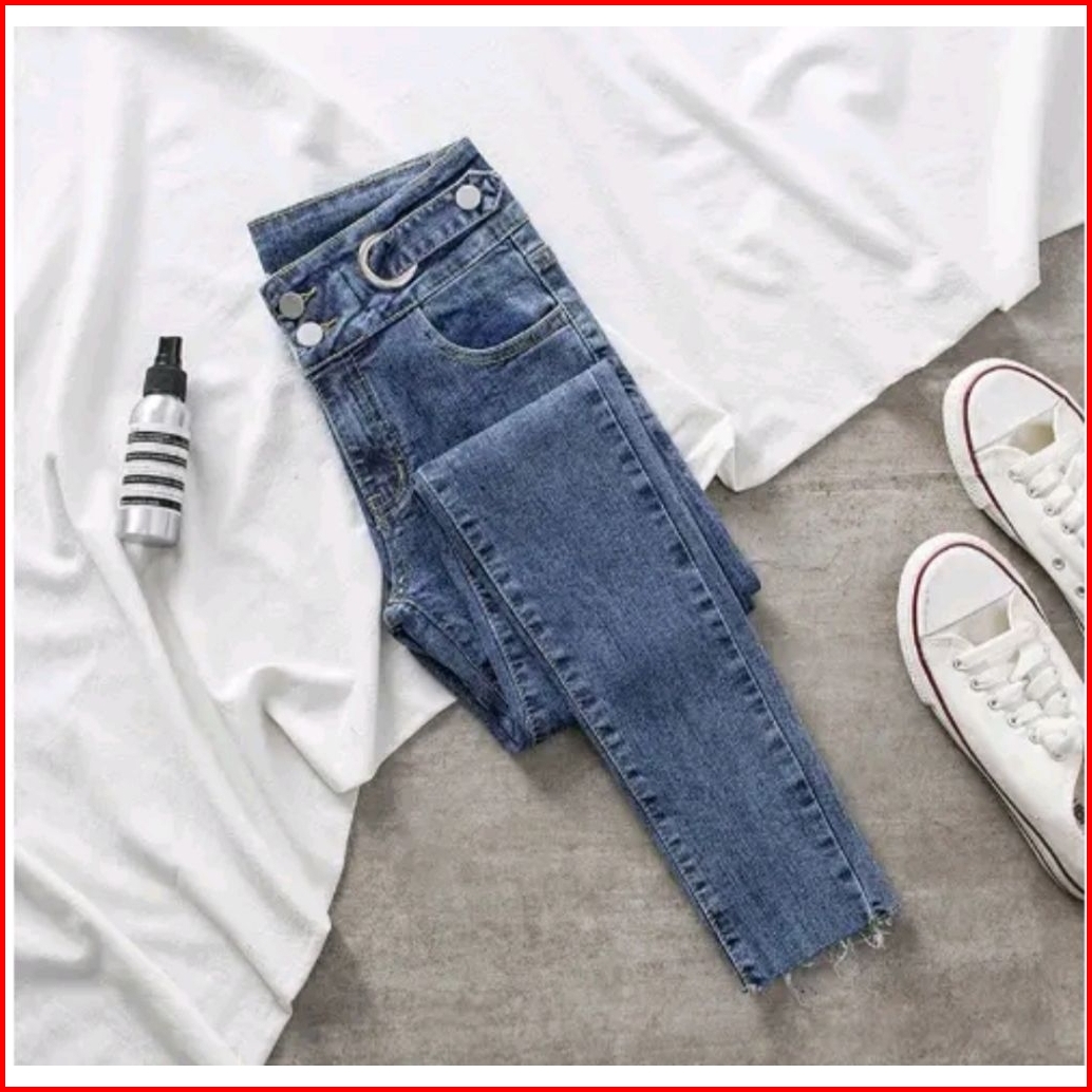 Nesya Zenn Skinny Jeans N Retro Celana Jeans Wanita Highwaist Jeanspanjang Unfinish Cutting Stretch Jeans Wanita Unfinis