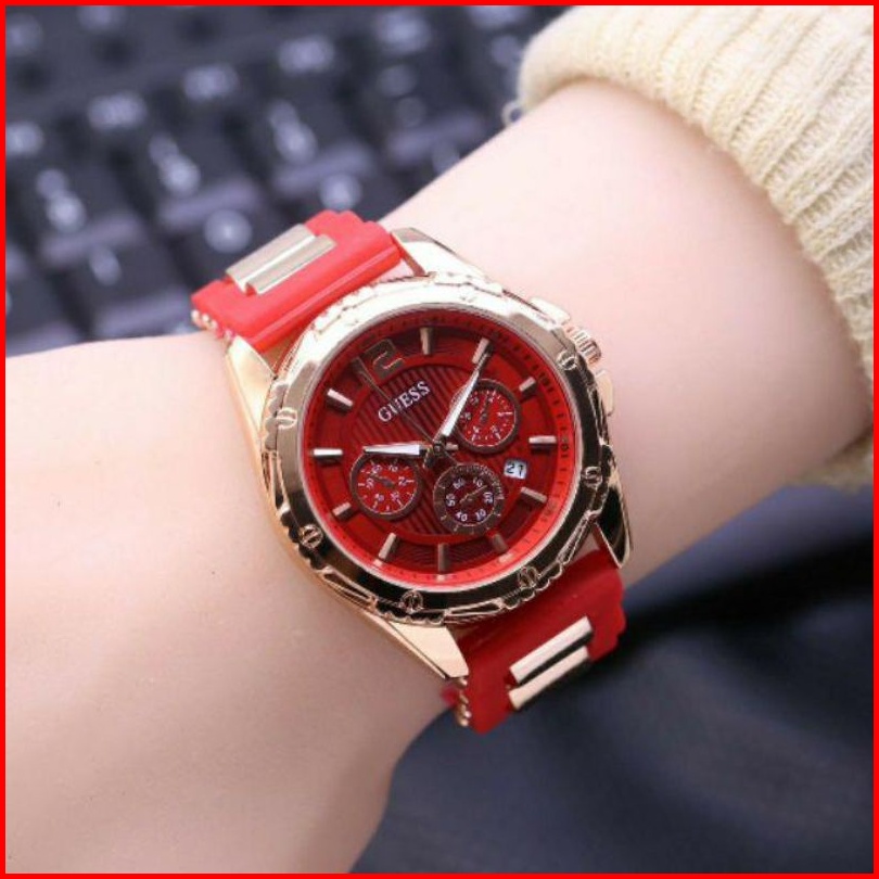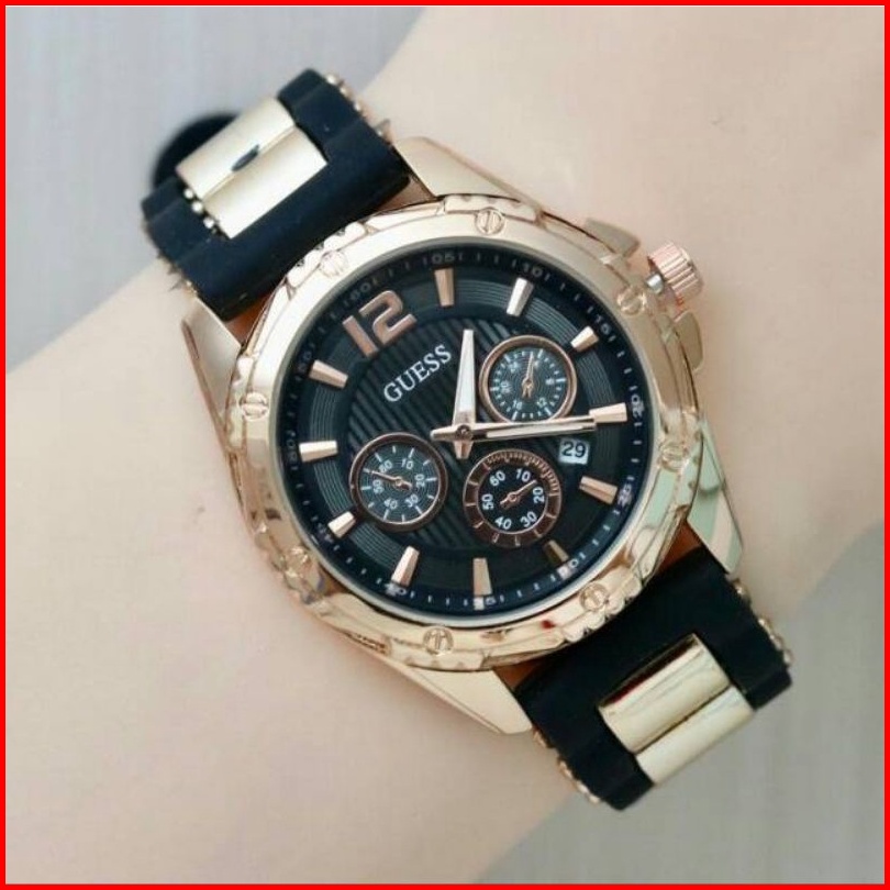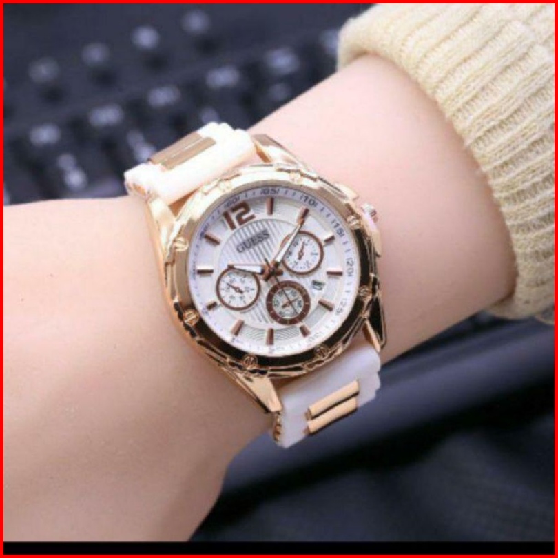 Grosir Jam Tangan Wanita Fashion Guess Crono Variasi Tanggal Aktif Strap Rubber Karet Terima
