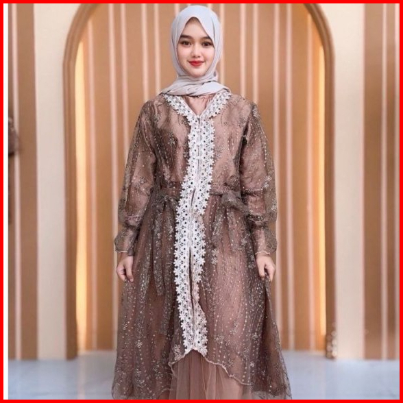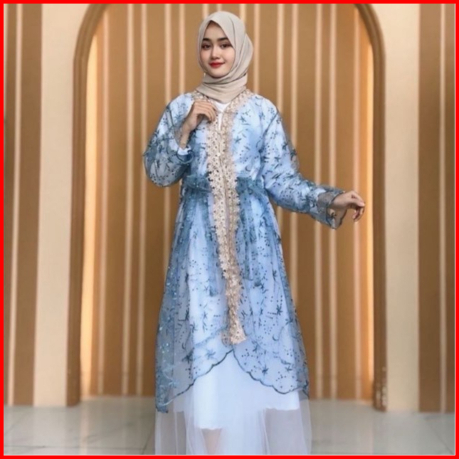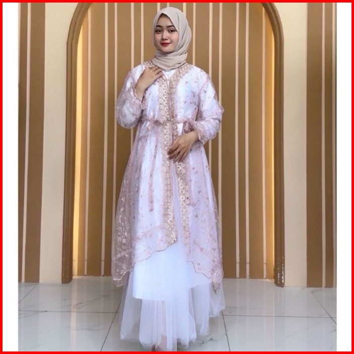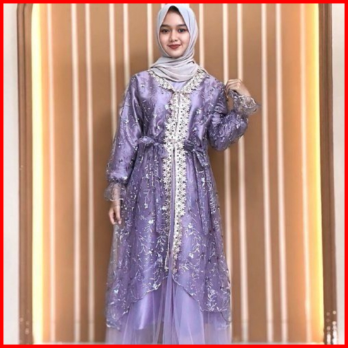 Raya Dress Satu Set Inner Outer Dan Rok Tutu Fashion Gamis Muslim Wanita Pesta Kondangan