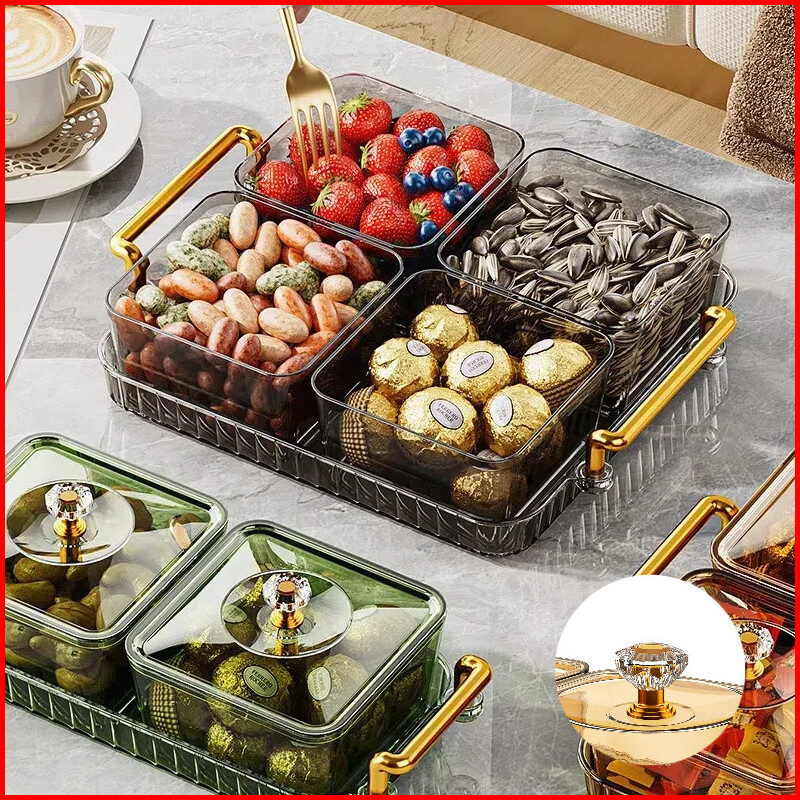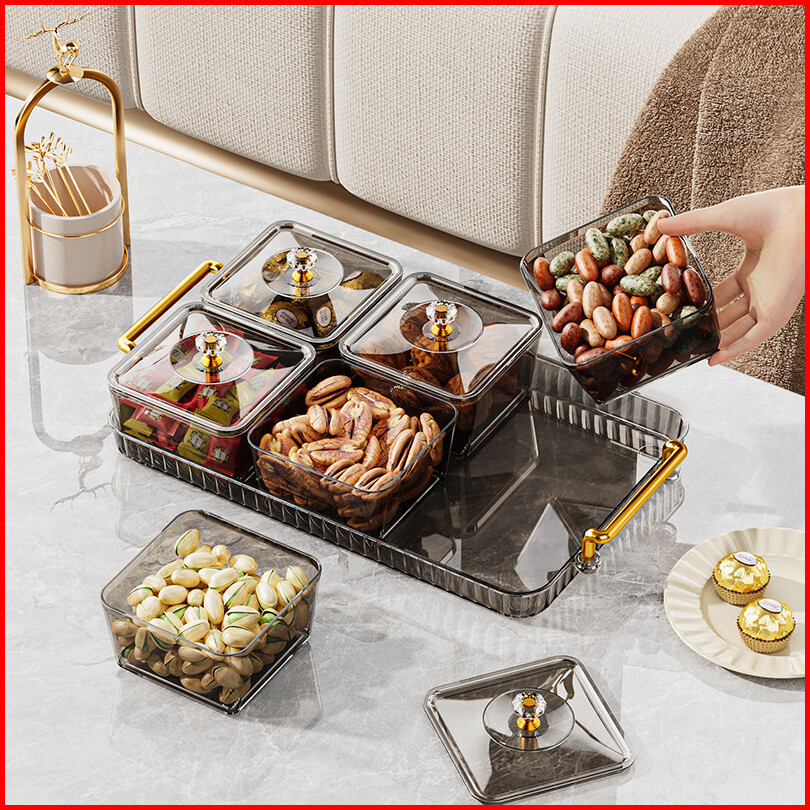 A-mi Snack Tray Topless Bulat Akrilik Snack Jar Penyimpanan Makanan Saji Dengan Tempat 2 4 6 Pcs Baki 1set