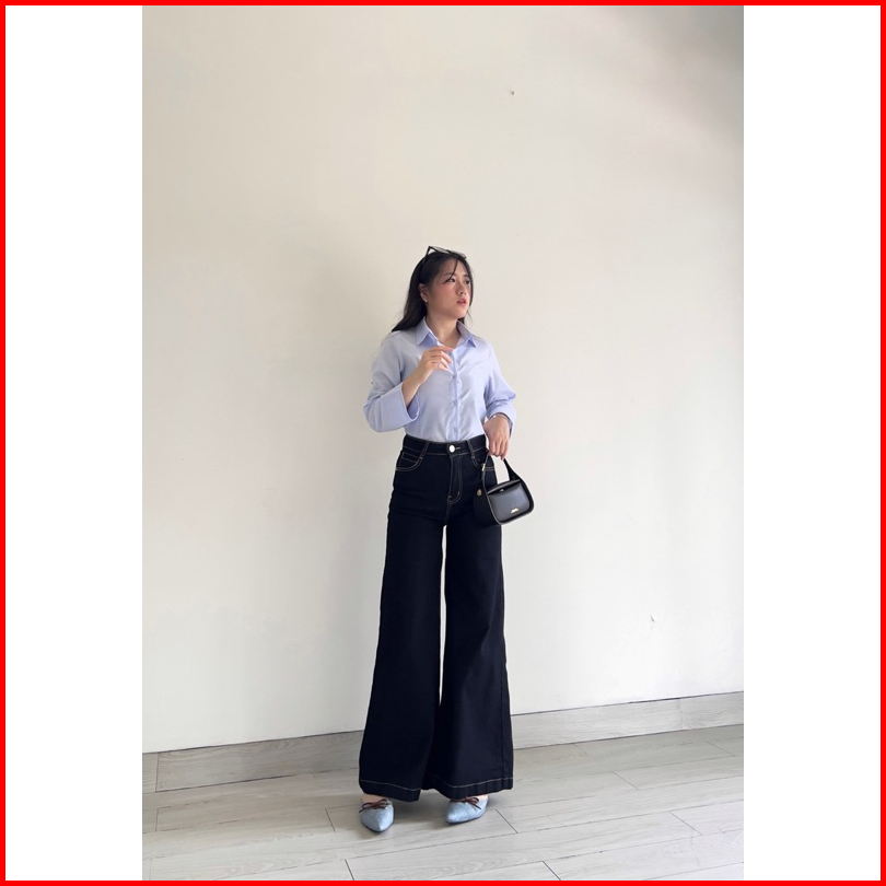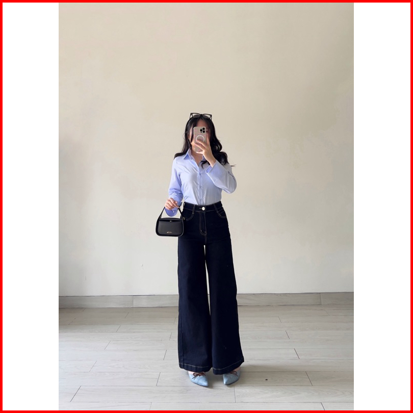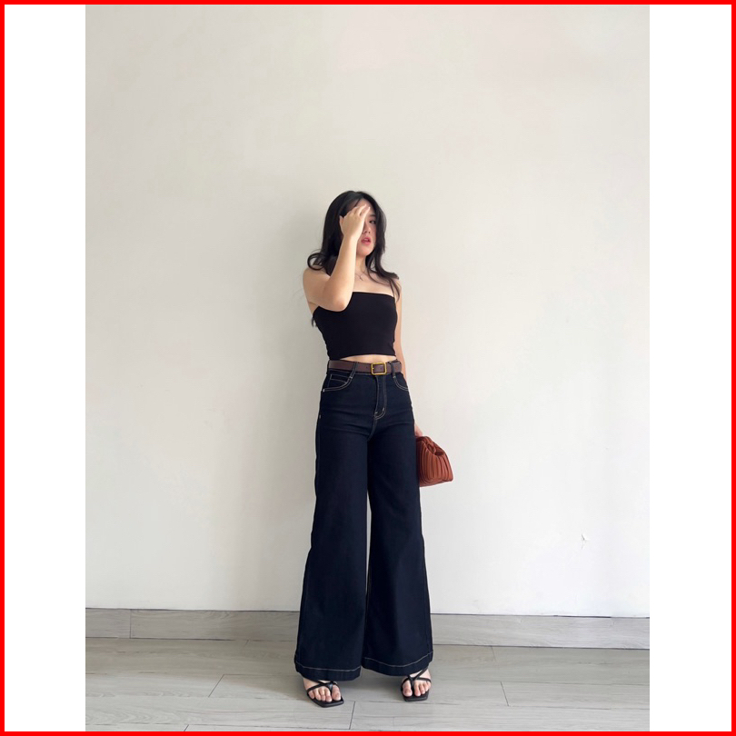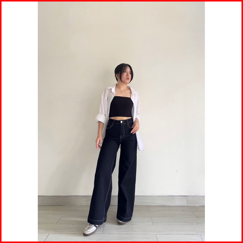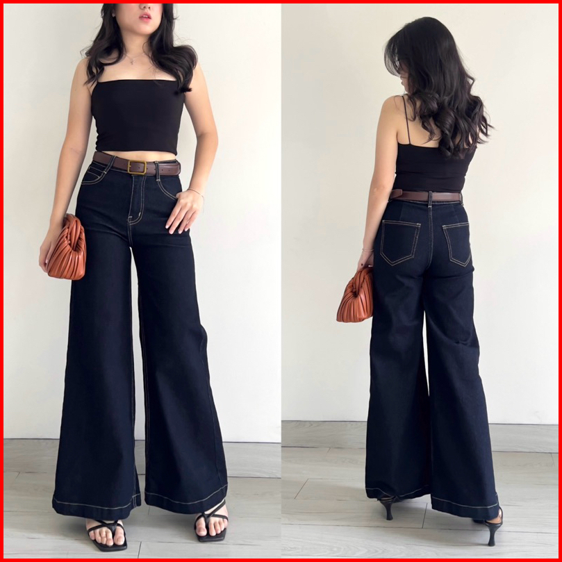 Klavee - Loro Wide Leg Jeans Stretch Celana Panjang Denim Melar Elastis Culot Style Jeans Longgar Wanita Kekinian Korean
