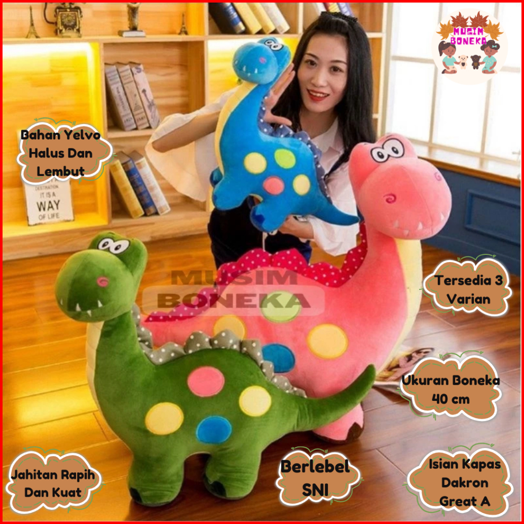 Boneka Dinosaurus Tompel Warna Warni Size 40cm Kado Hadiah Ulang Tahun Kualitas Super Murah Berlabel Sni