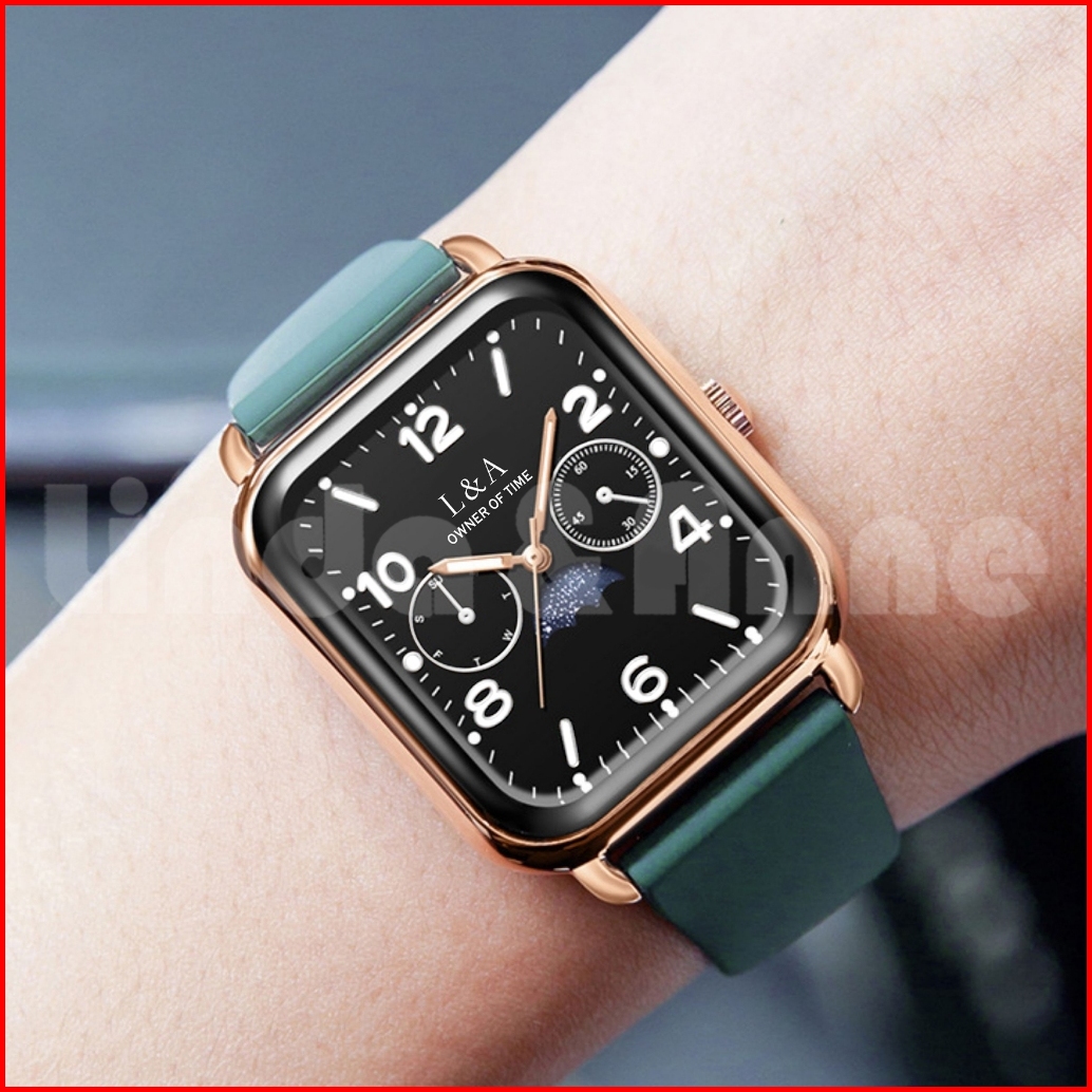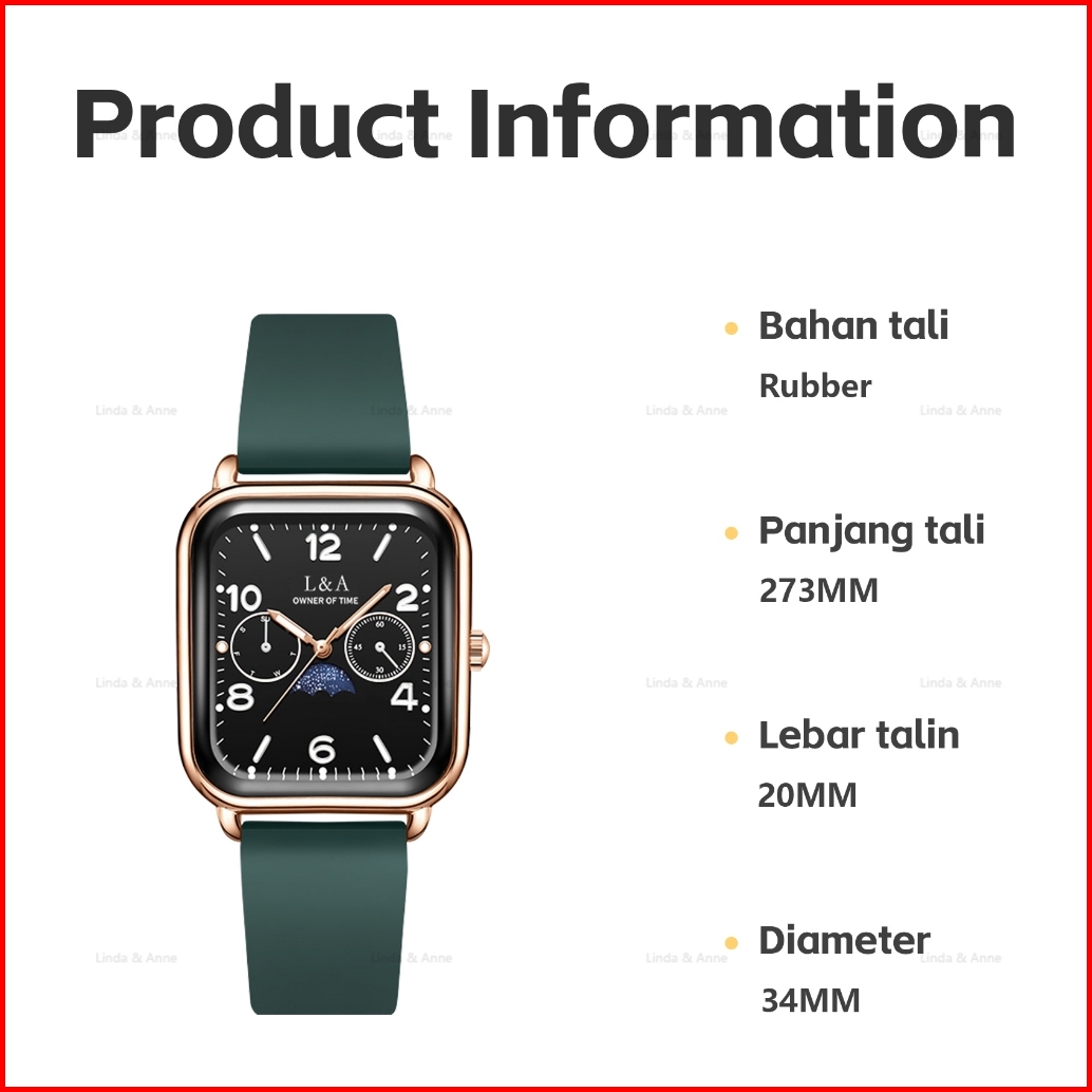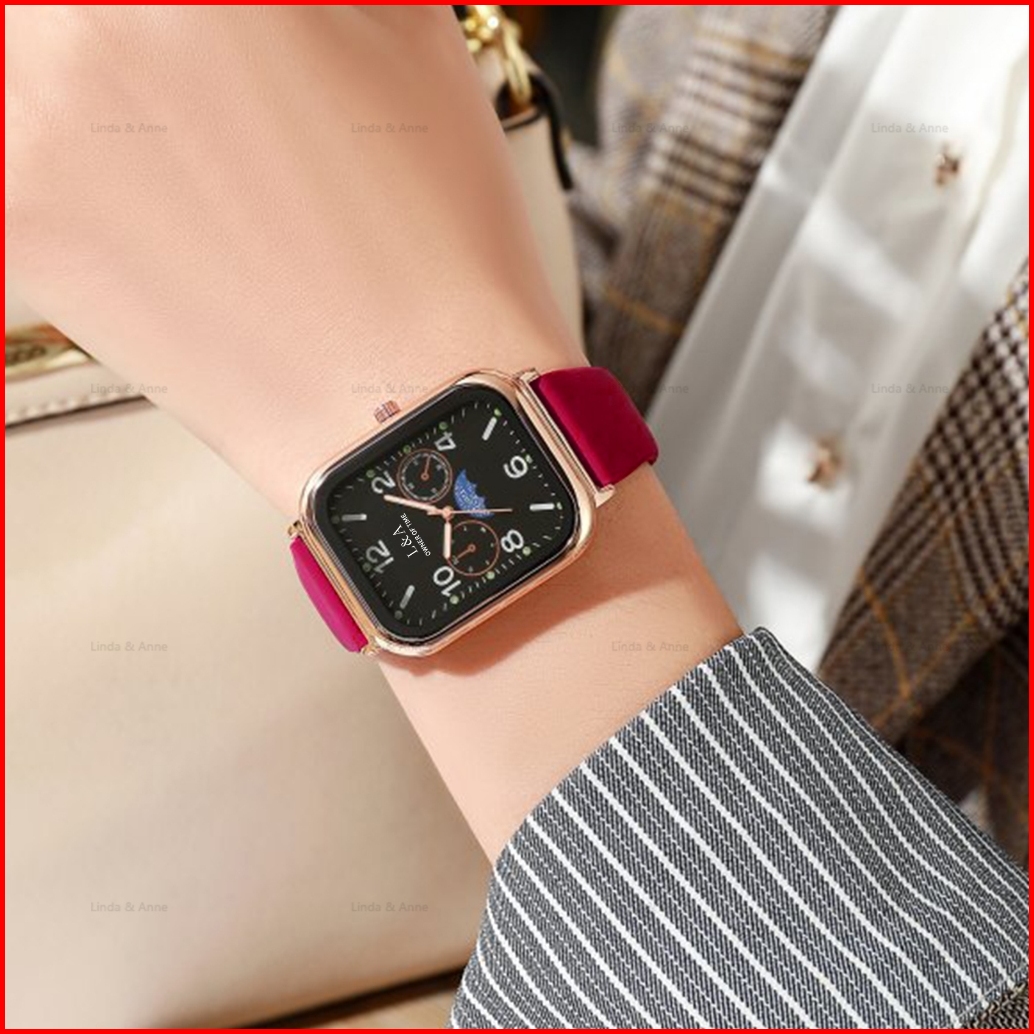 L A - Jam Tangan Wanita Dial Kotak Motif Payung Analog Watch Rubber Silicone