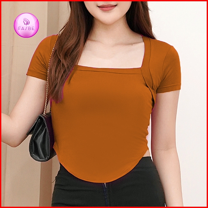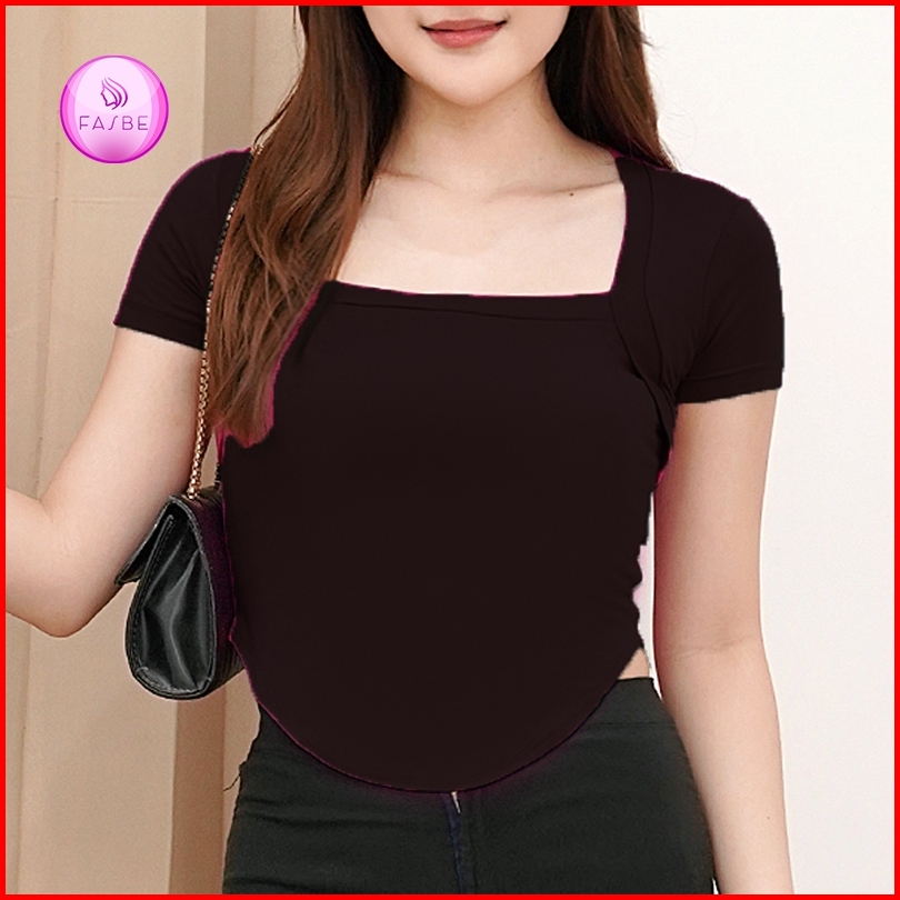 Crop Top Korea Square Neck Oval Top Lengan Pendek - Spandek Import Premium