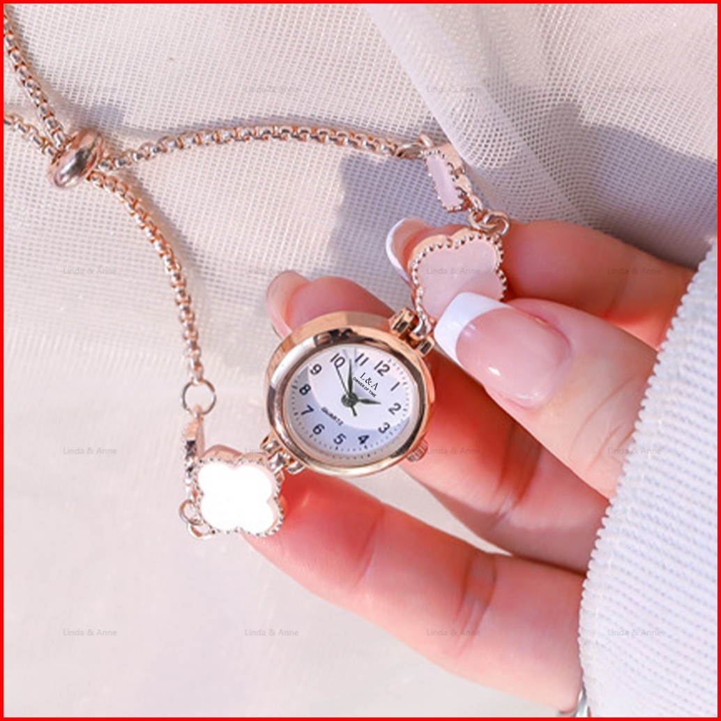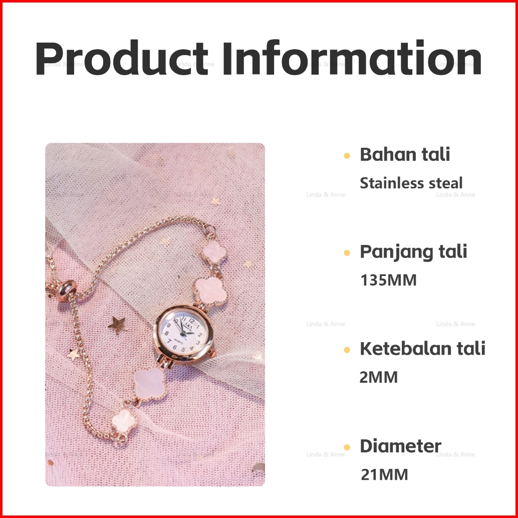 L A - Jam Tangan Serut Tali Clover Leaf Cantik Jam Tangan Analog Fashion Wanita