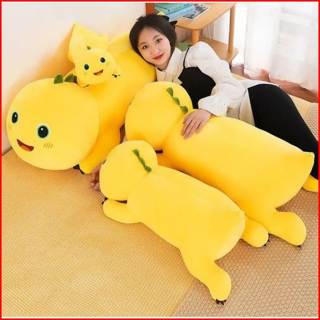 Boneka Guling Dino Nailong Jumbo 80cm Dino Kuning Nalong Hadiah Ulang Tahun Plush Bahan Halus Lembut