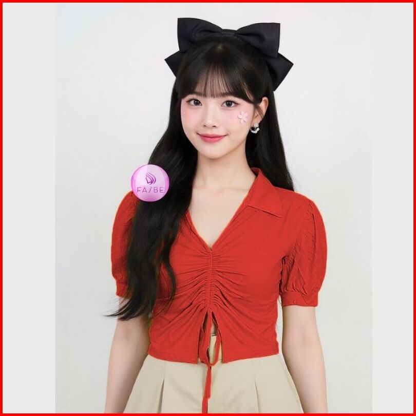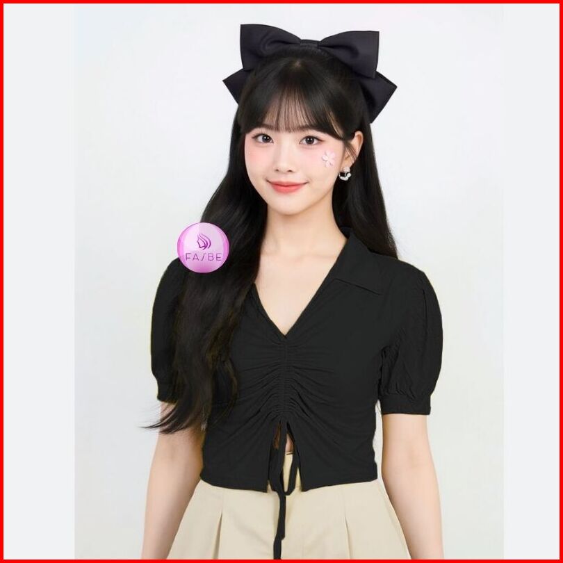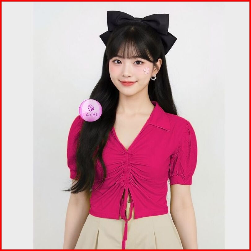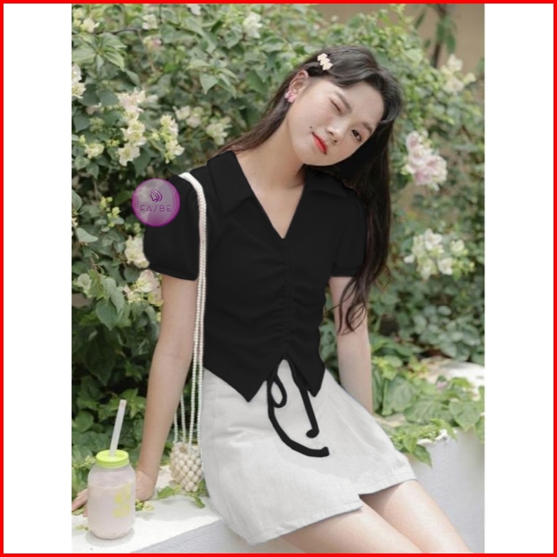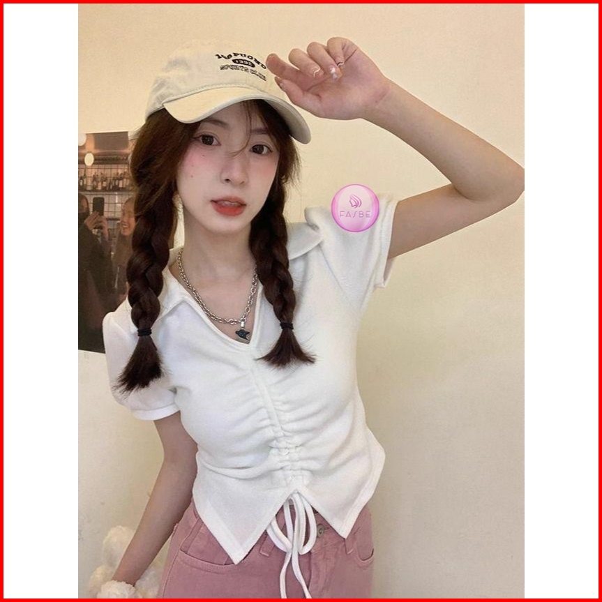 Crop Top Wanita Lengan Pendek Atasan Kaos Wanita Tali Serut Terbaru 8010