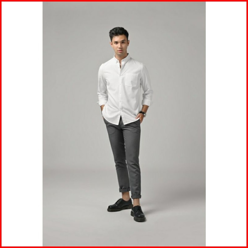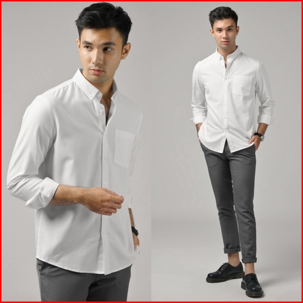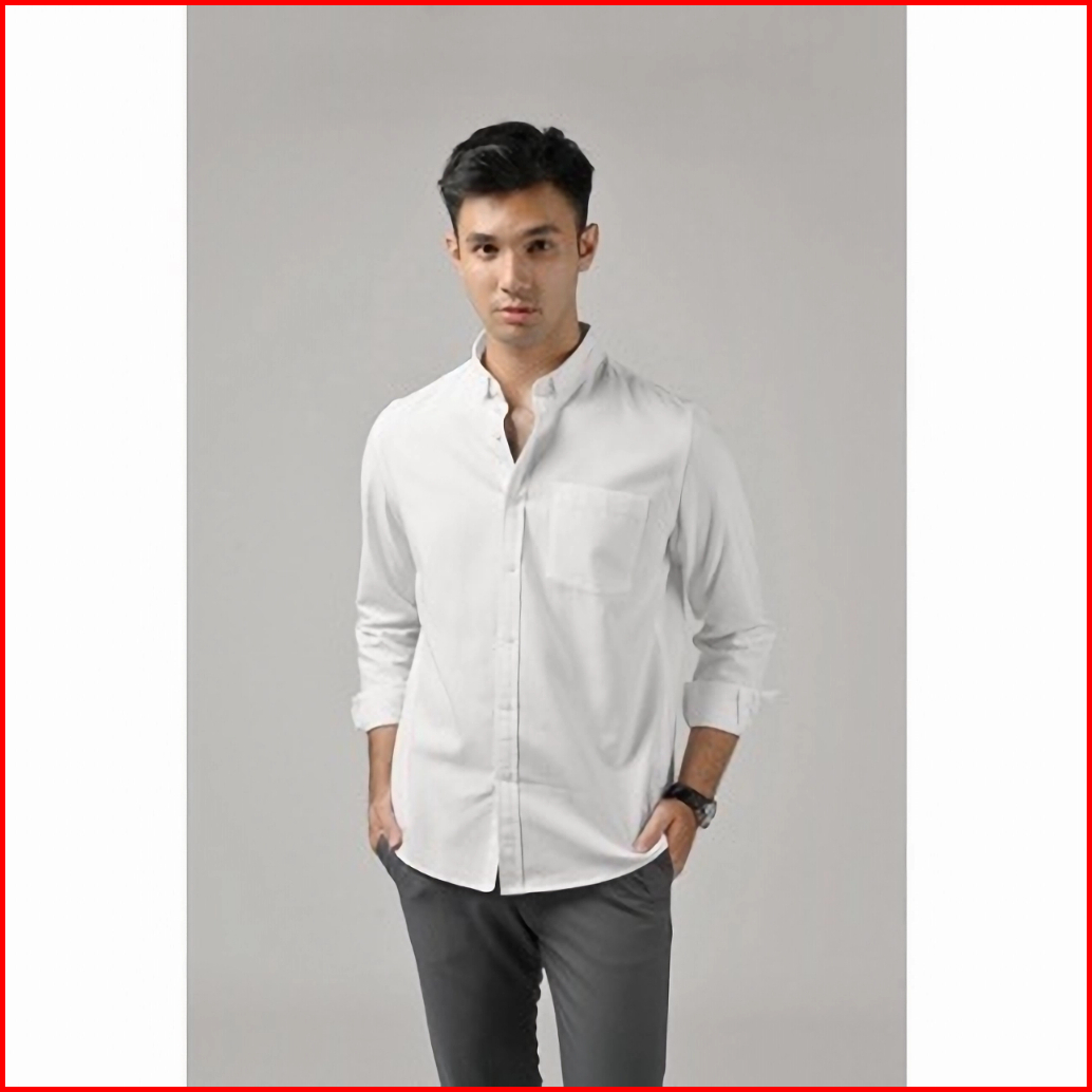 Kemeja Polos Pria Slimfit Putih Lengan Panjang Kancing Putih Bahan Katun Premium Size M L Xl Xxxl