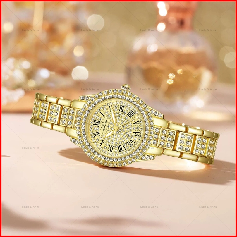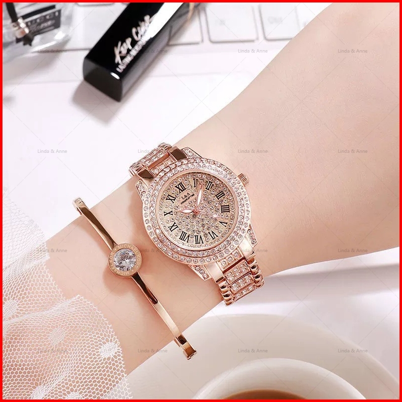 L A - Jam Tangan Rantai Stainless Steel Aksen Diamond Analog Quartz Fashion Wanita