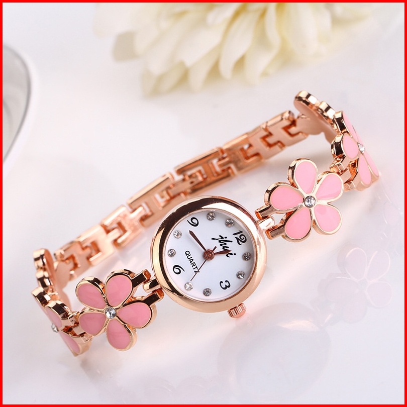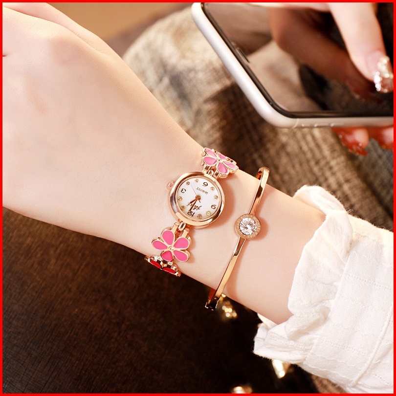 Jam Tangan Wanita Bunga Kecil Gaya Fashion Trendy Jam Tangan Gelang Wanita Bunga Kecil