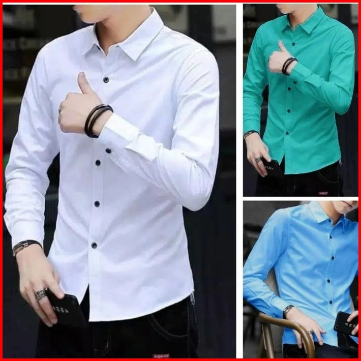 Kemeja Polos Pria Dewasa Kemeja Panjang Cowok Pria Lengan Panjang Slim Fit Size M L Xl Xxl Xxxl