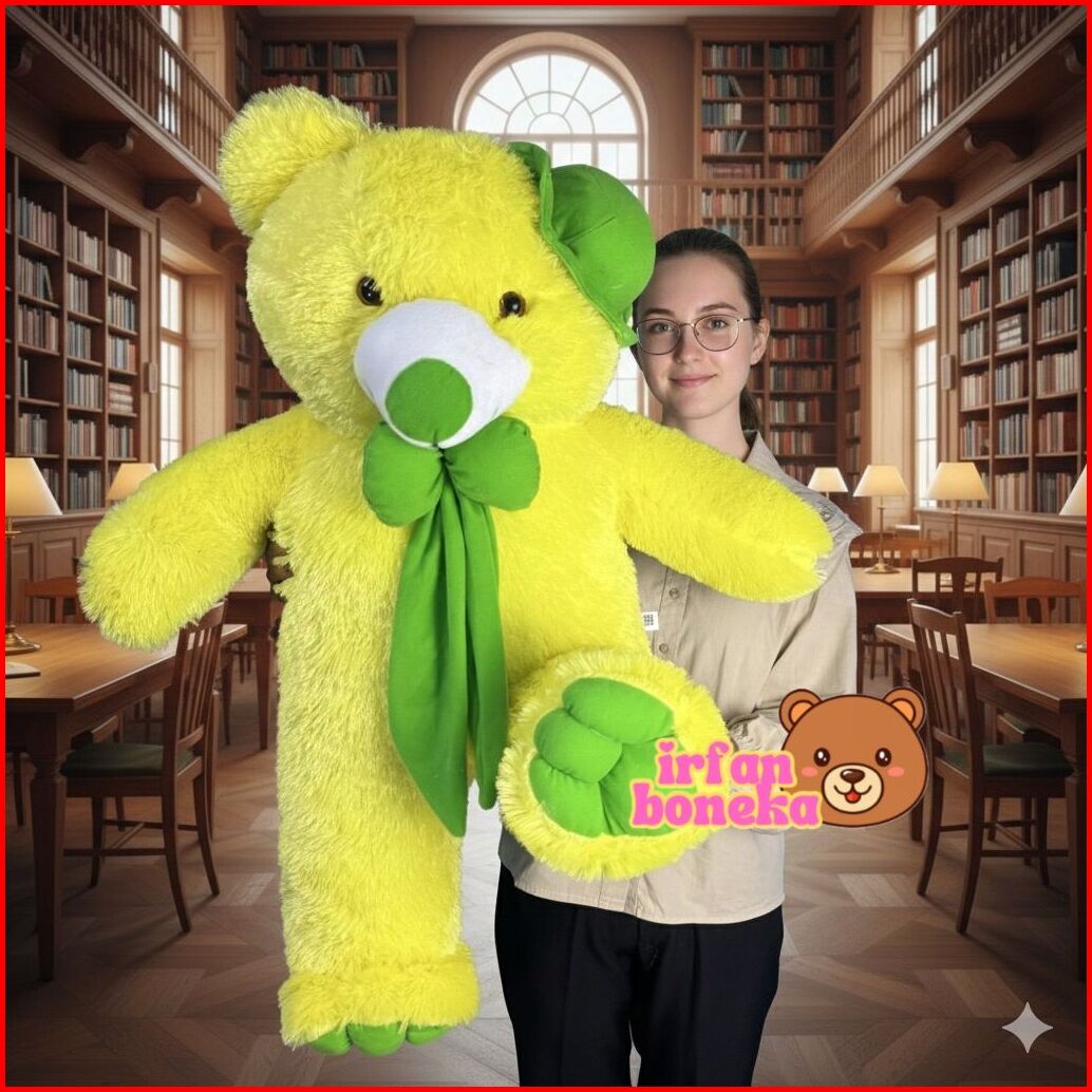 Boneka Jumbo Beruang Teddy Bear Pakai Topi Pita 90cm Gratis Ongkir
