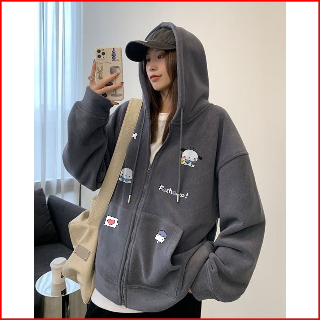 Harvional Jaket Zipper Resleting Kartun Punchico Bahan Fleece Size S - Xxl Pria Wanita