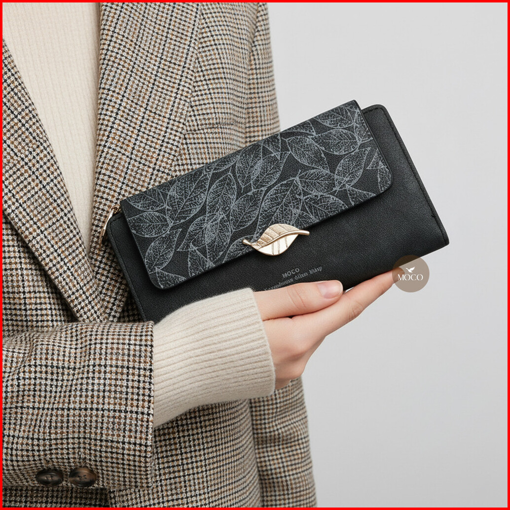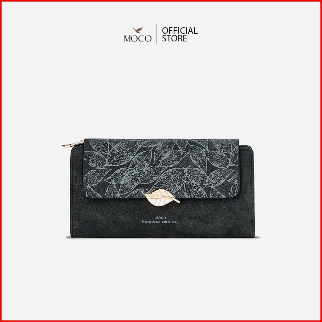 Moco - Dahlia Wallet Fashion Dompet Wanita Panjang Bahan Kulit Wallet Leather Classic Motif Penutup Daun Elegan Km01