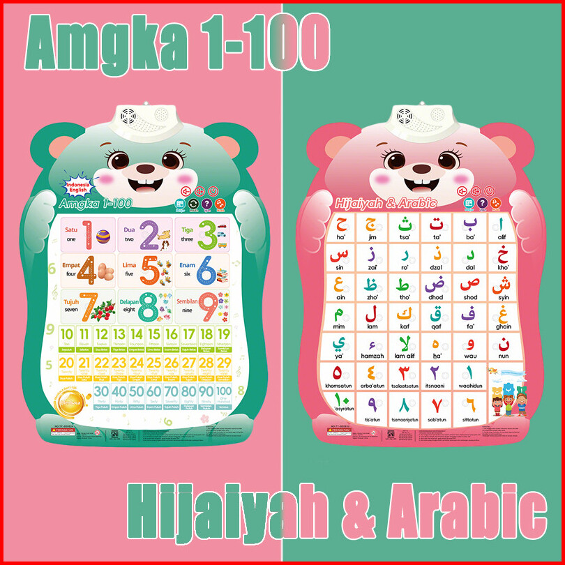 Poster Edukasi Interaktif Bersuara Belajar Bahasa Indonesia-inggris Untuk Anak Hijaiyah Arabi