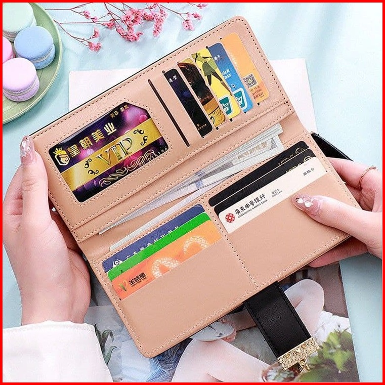 Dompet Panjang Wanita Korea Kulit Premium Mewah Daun Fashion Scaly Murah Lipat Wa093b5