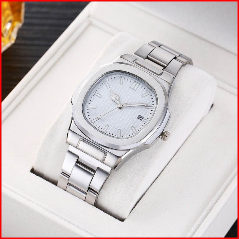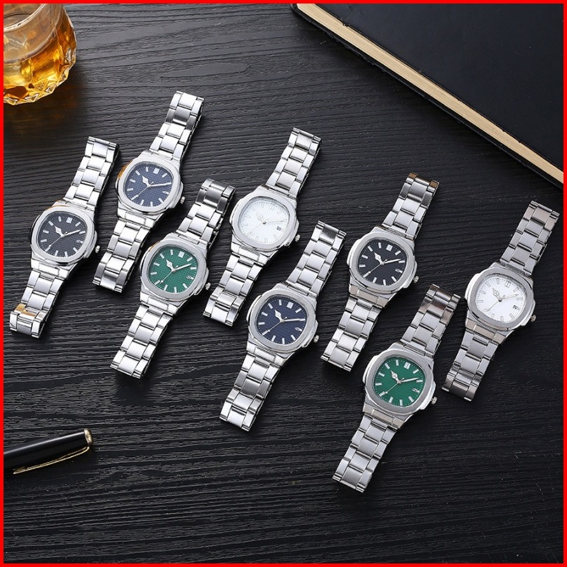 Jam Tangan Pria Persegi Bisnis Stainless Steel Tali Analog