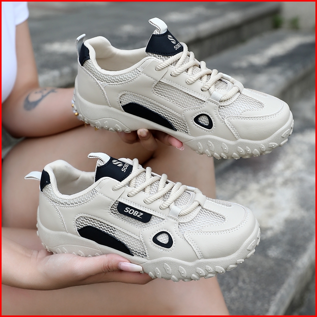Sobz Sepatu Kets Wanita Berwarna Hitam Krem Serbaguna Untuk Lari Dan Jalan Santai