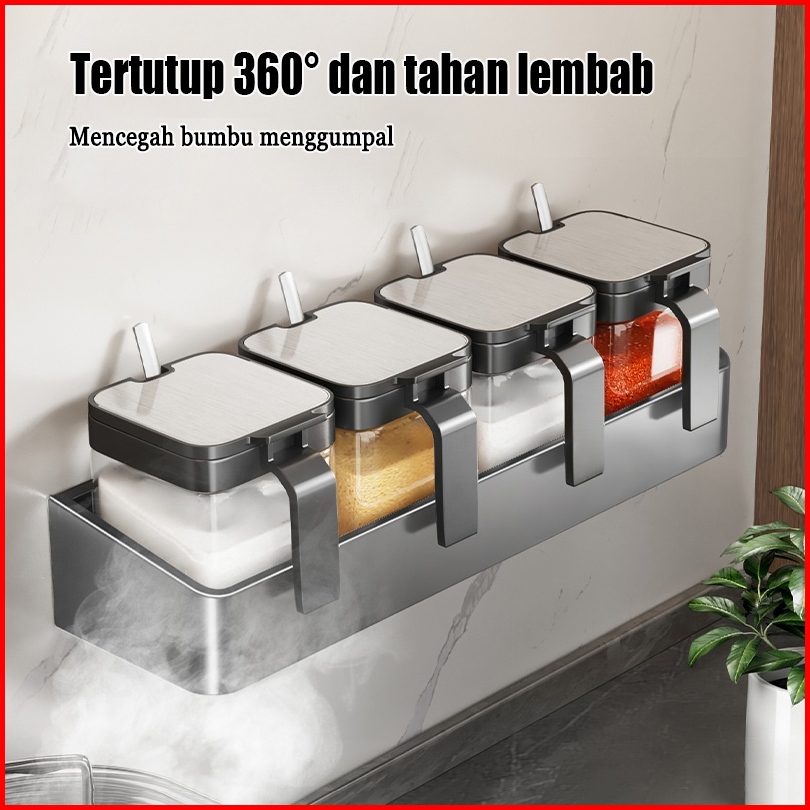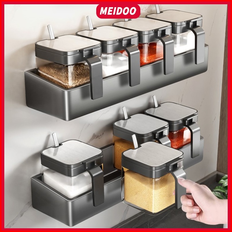 Meidoo Rak Bumbu Dapur Set Kombinasi Toples Bumbu Terpasang Di Dinding Tidak Perlu Pengeboran