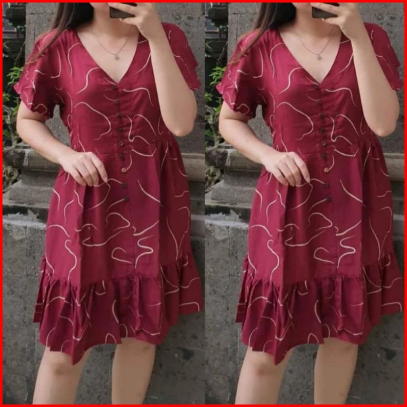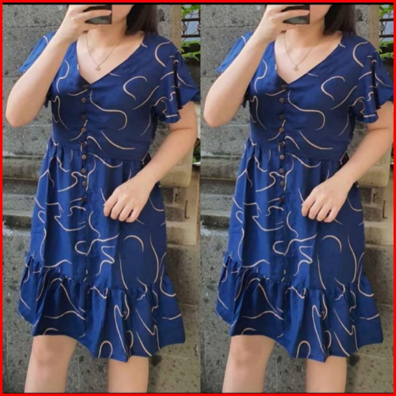 Daster Polo Press Body Bumil Busui Frendly Motif Salur Mini Selutut Dress Kancing Aktif Bagian Depan
