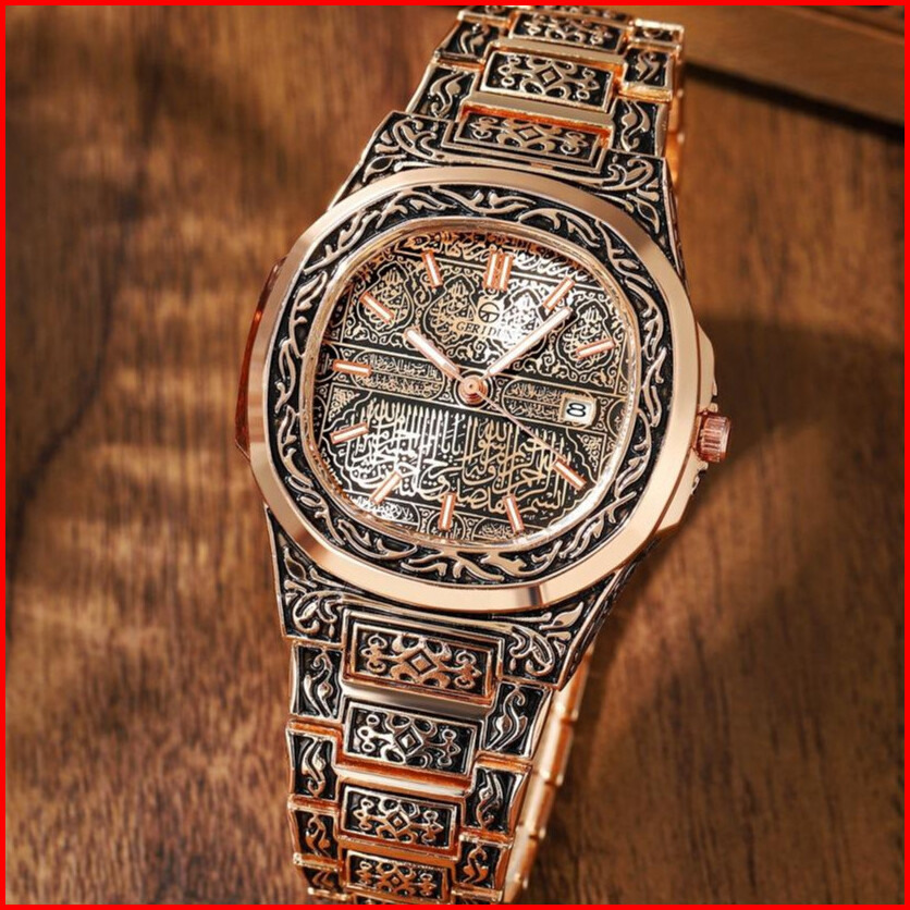 Alaska Jam Tangan Pria Anti Air Jp-29 New Arab Unik Motif Ukir Kaligrafi Arab Full Stainless Steel Anti Karat