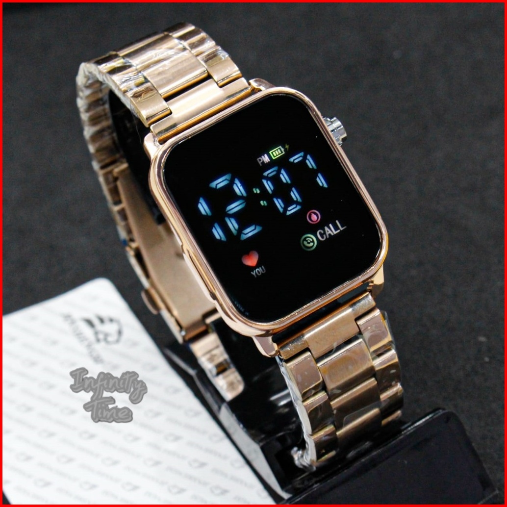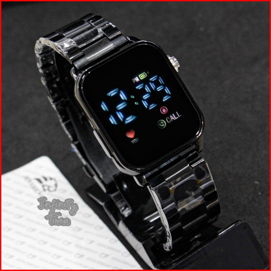 Jam Tangan Led Watch Jss3642 Digital Cowok Cewek Strap Rantai Stainless
