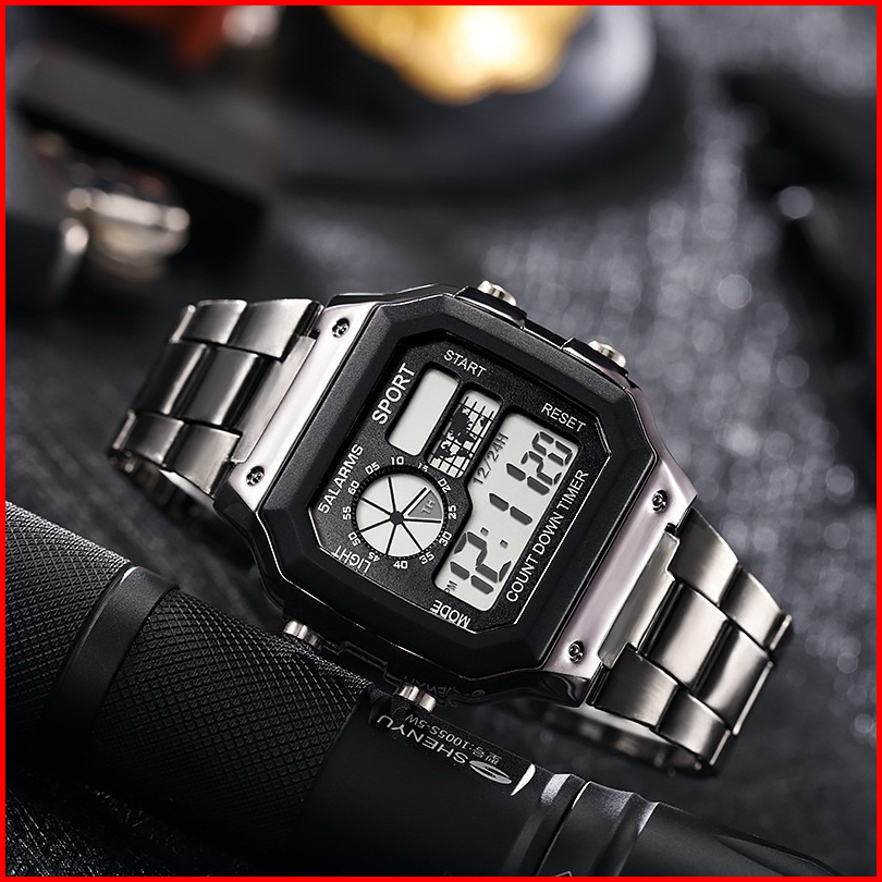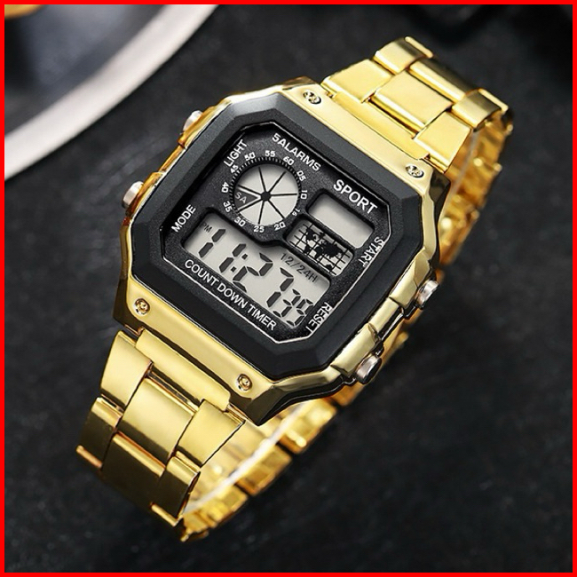 Jam Tangan Pria Fashion Sport Digital Sergi Strap Rantai Stell Dikirim Jakarta