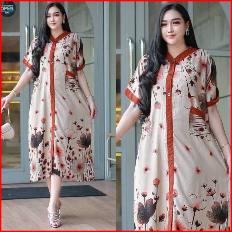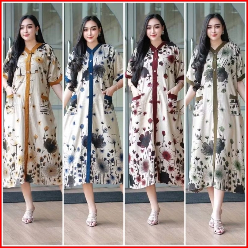 Daster Natali Kekinian Terbaru Wanita Busui Jumbo Bahan Rayon Premium Motif Bunga