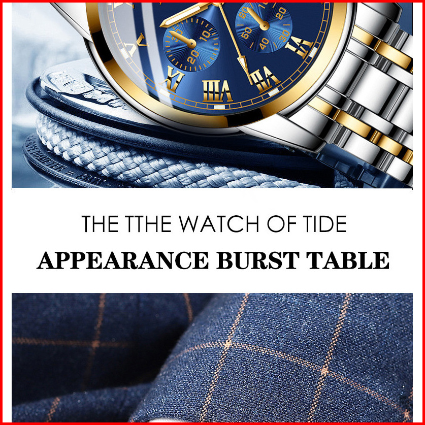 Fngeen Jam Tangan Pria Bermerek Terkenal Jam Tangan Bisnis Modis Tali Baja Bercahaya Kedap Air Gaya Baru