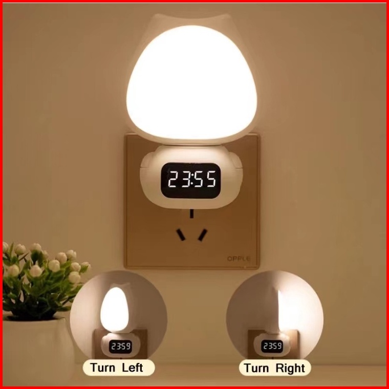 Wor Mylampu Tidur Model Kucing Led Wireless Lampu Tidur Jam Remote Digital Rechargeable Kontrol Jarak Jauh Lampu Tidur