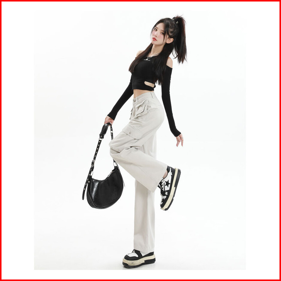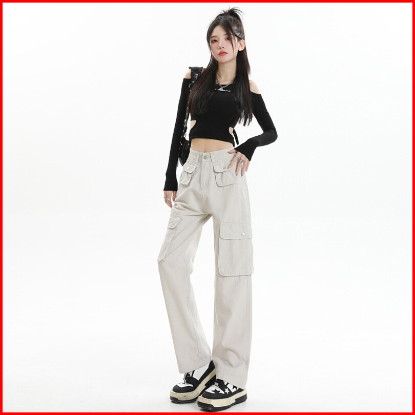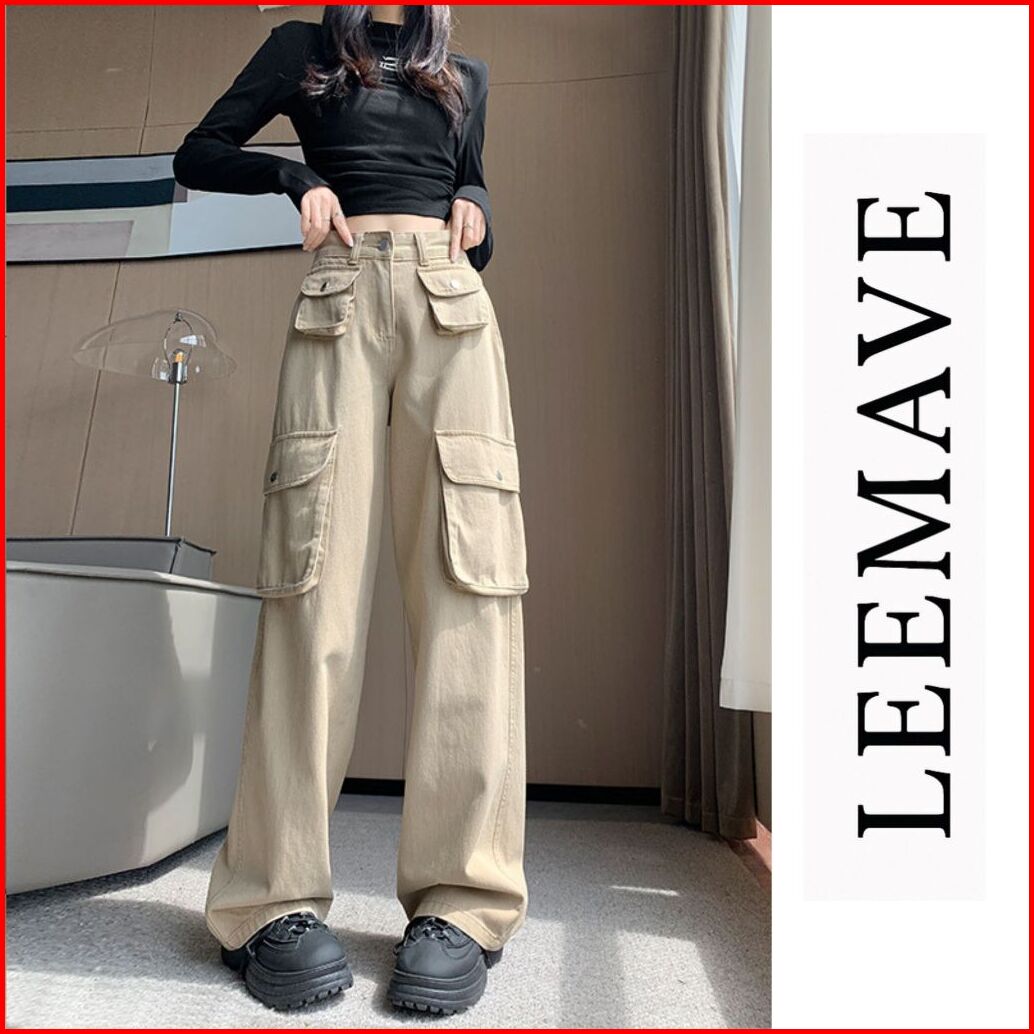 Leemave Celana Cargo Jeans Wanita Highwaist Loost Pants Premium Denim Hw Korean Style