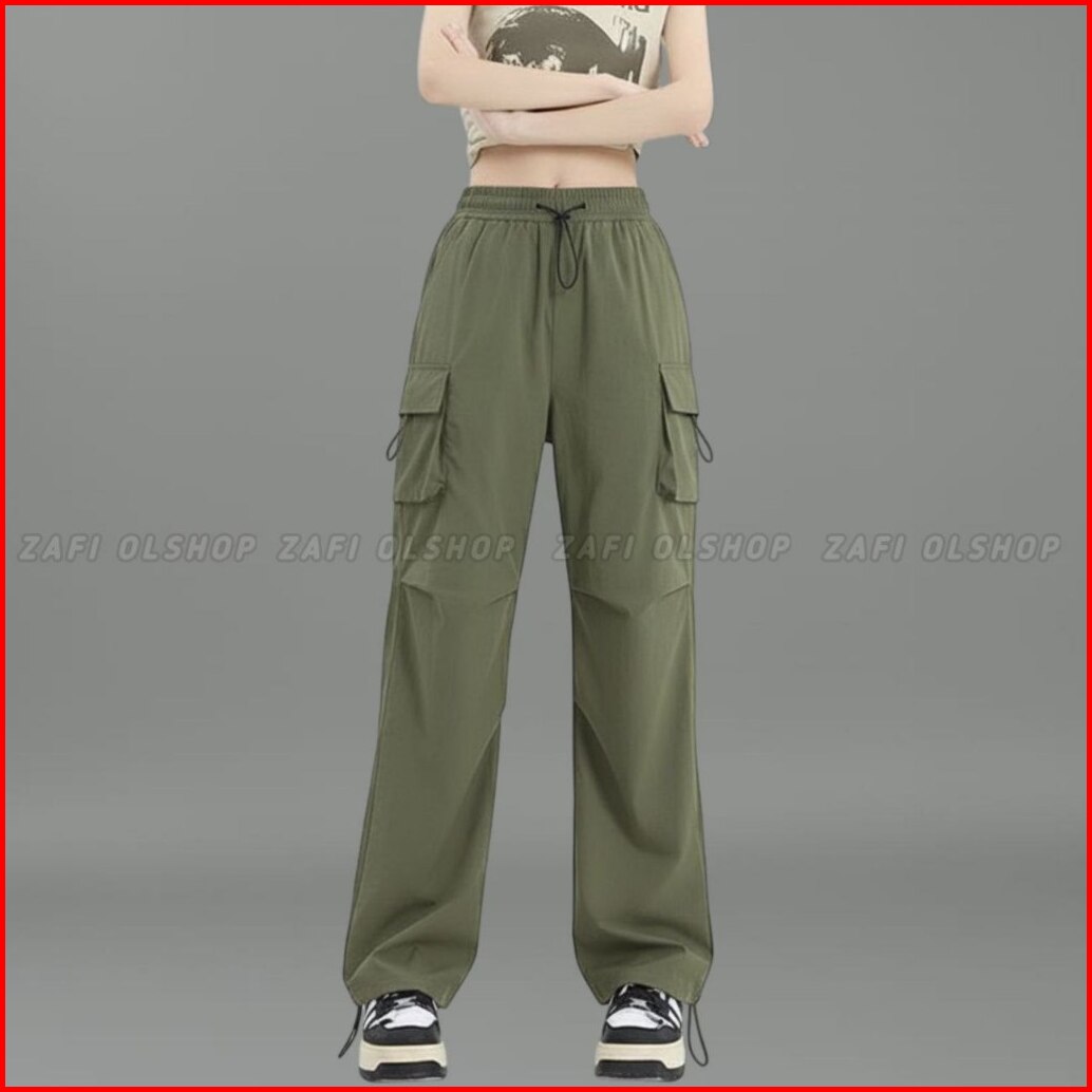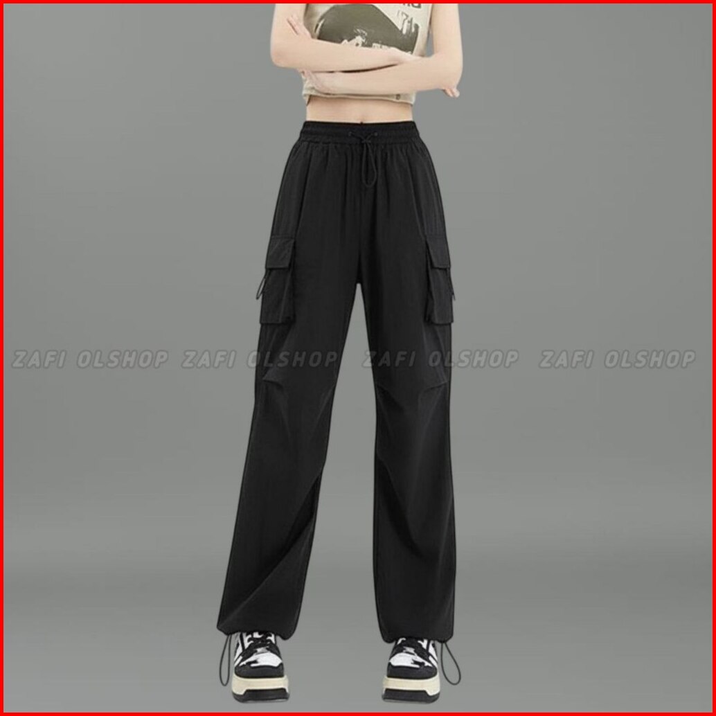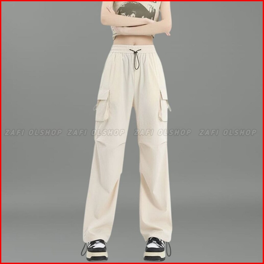 Cargo Pants Wanita Highwaist Loose Pants Korean Style Jumbo - Celana Cargo Wanita Terbaru