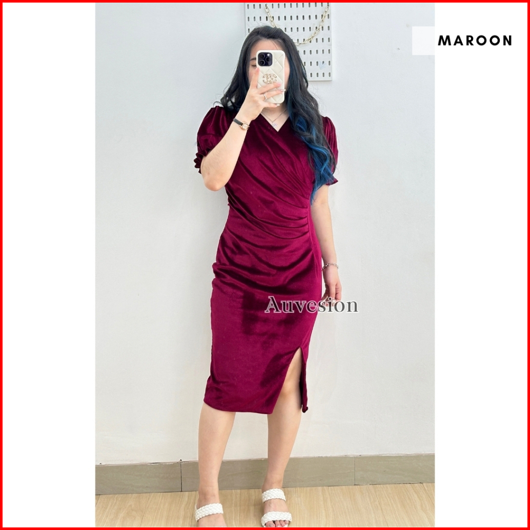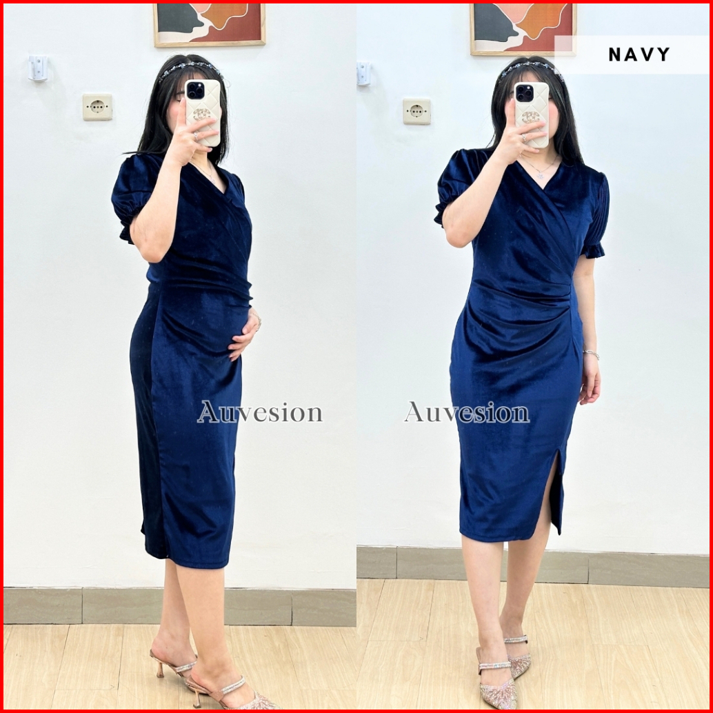 Auvesion Rosalinda Velvet Dress 6007 Gaun Pesta Bludru Bigsize