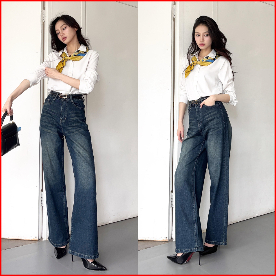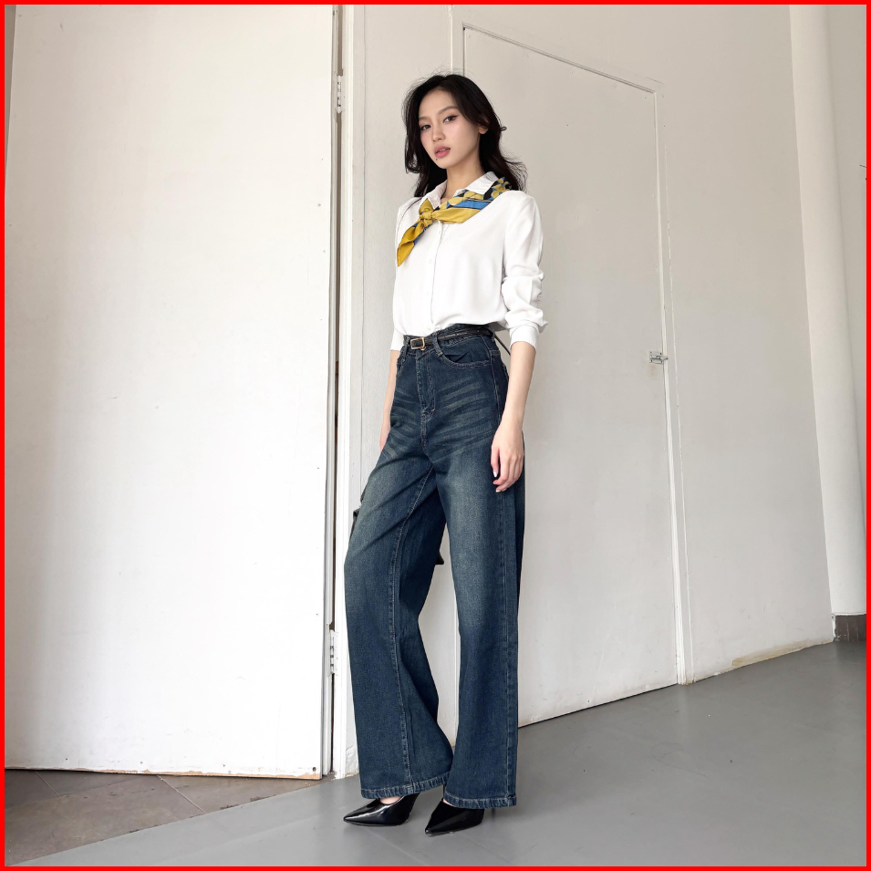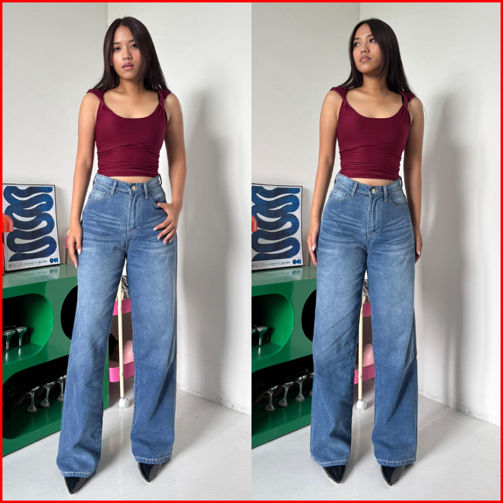 Ladouce - Bruce High Waist Straight Jeans Celana Panjang Denim Wanita