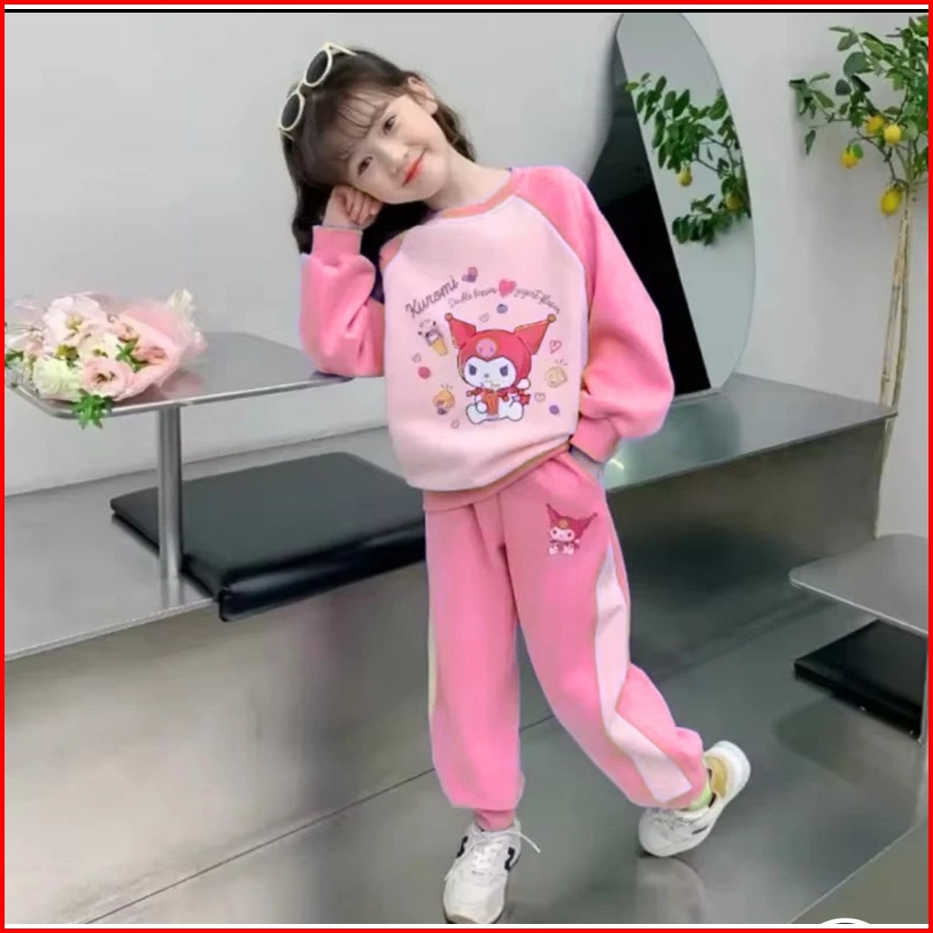 Setelan Anak 1-5 Tahun Motif Sweater Jogger Kuromi Paling Hitz Kekinian