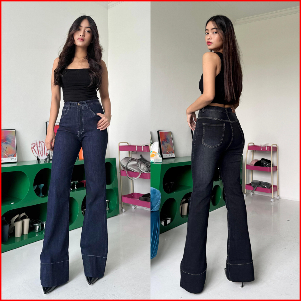 Ladouce - Mckenzie Flare Boot Cut Cutbray Jeans Celana Panjang Wanita High Waist Denim